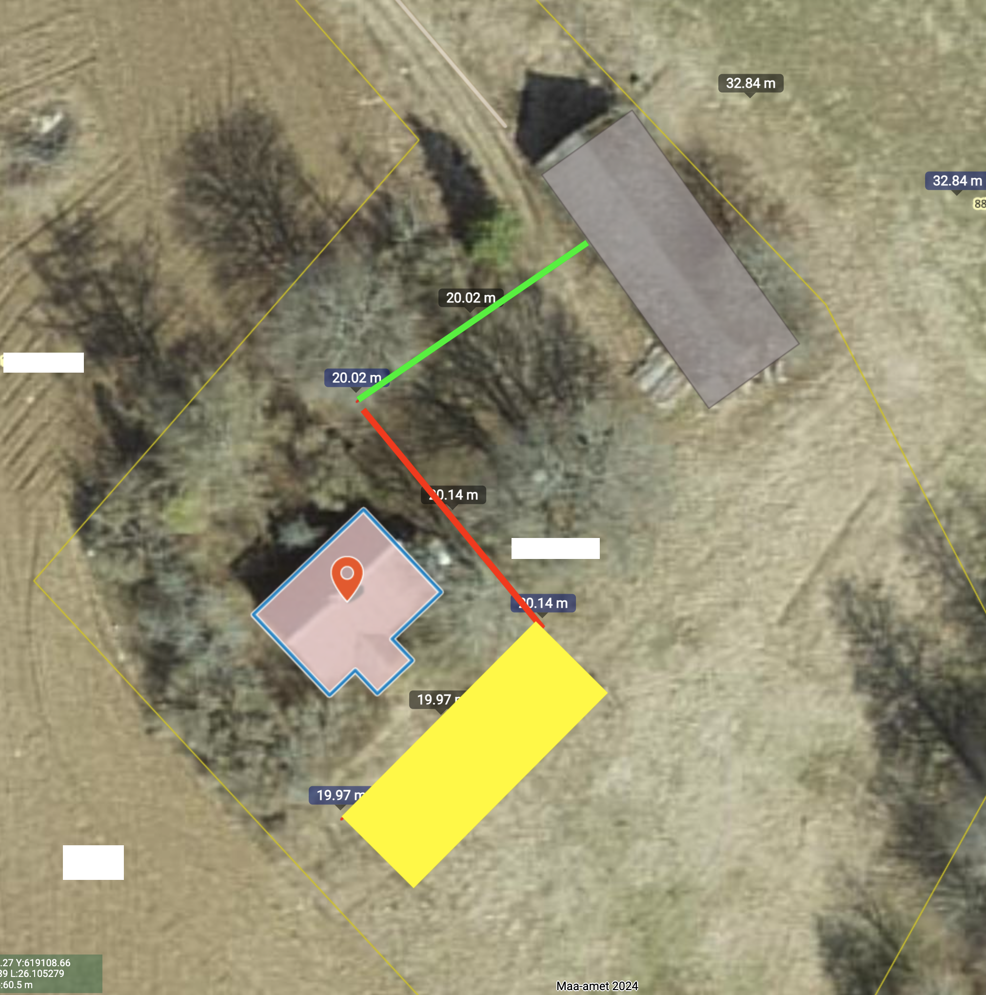 Kanalisatsioonitoru 20m septikuni (joonisel roheline)