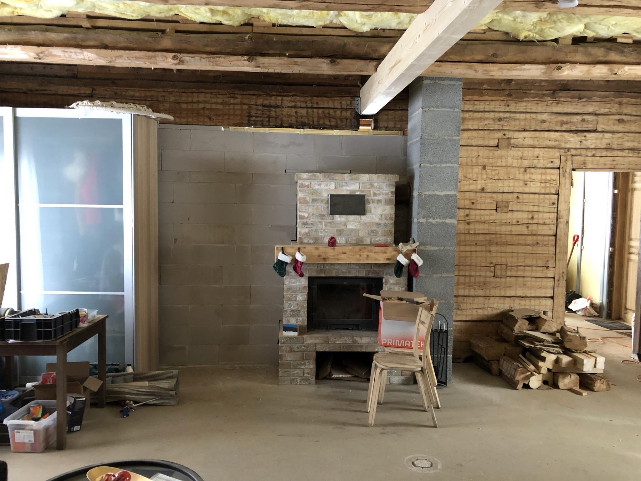 Kamina seina ja korsten ilmselt antiikkrohviga ning ukse auguga sein lihtsalt sirgu ja siledaks, millele tuleb tapeet.