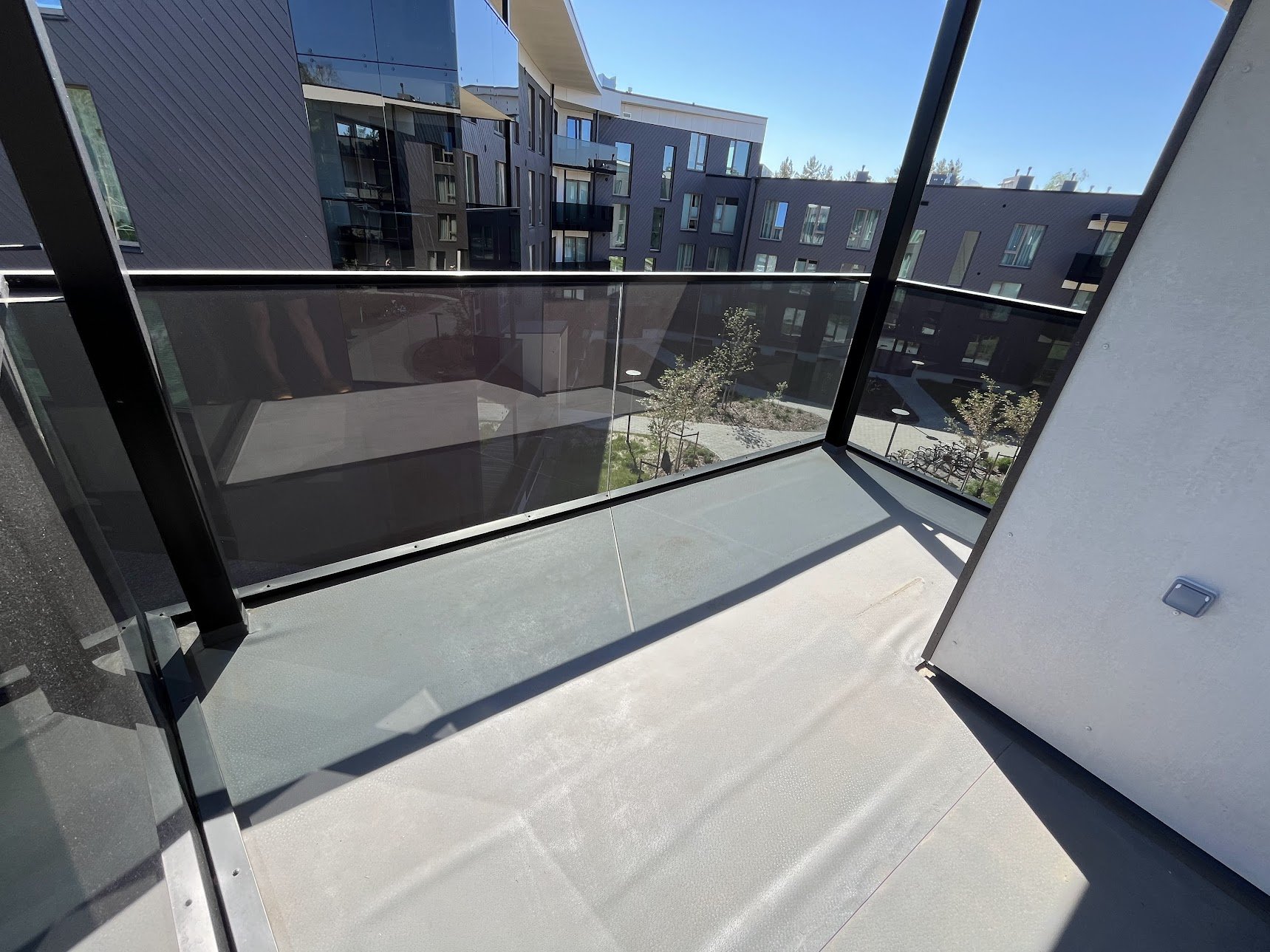 Umbkaudne hinnang. Materjaliks termosaare moodullaudis. Valida erinevate mustrite vahel kalasaba, tellis, rida jms. Materjali osa sellest u 1500. Gumi toetub 1cm paksustele kummiühendustele, laudis 21mm. Kogukõrgus 31mm, soovitaks vaadata aknapleki kõrguseid - milliseid materjale on üldse võimalik kasutada. Kui pind võimaldab ka aluslaagitusele rajamist, saame pakkuda ka erinevaid puitplaste jms. Erikujulise rõdu tõttu ilmselt soovitaks ka Gumi koos paigaldusega.