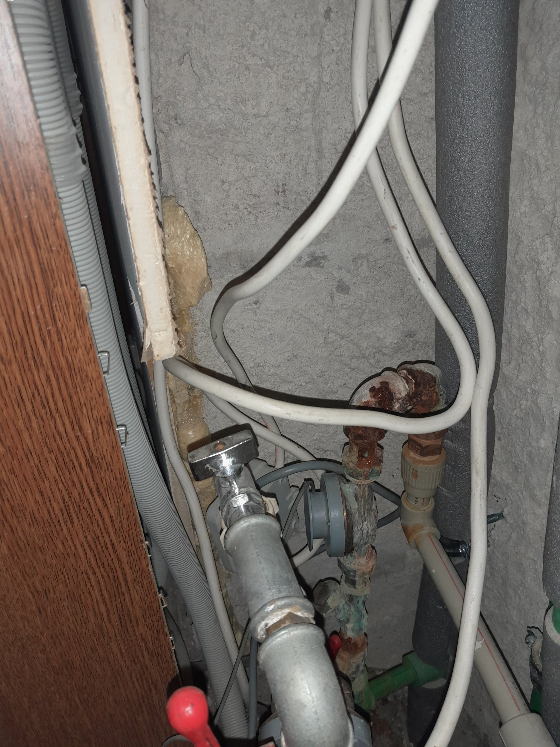 Kahe veemõõtja vahetus (on olemas), ühe kraani vahetus ja roostetava ühenduse vahetus. Piiratud juurdepääs, u 15 x 50 cm.