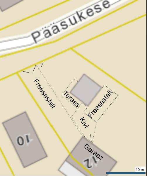 Pinnas on õhukesel mullakihil muru ja selle segune kruusakate garaazi ees kuni väravateni.
