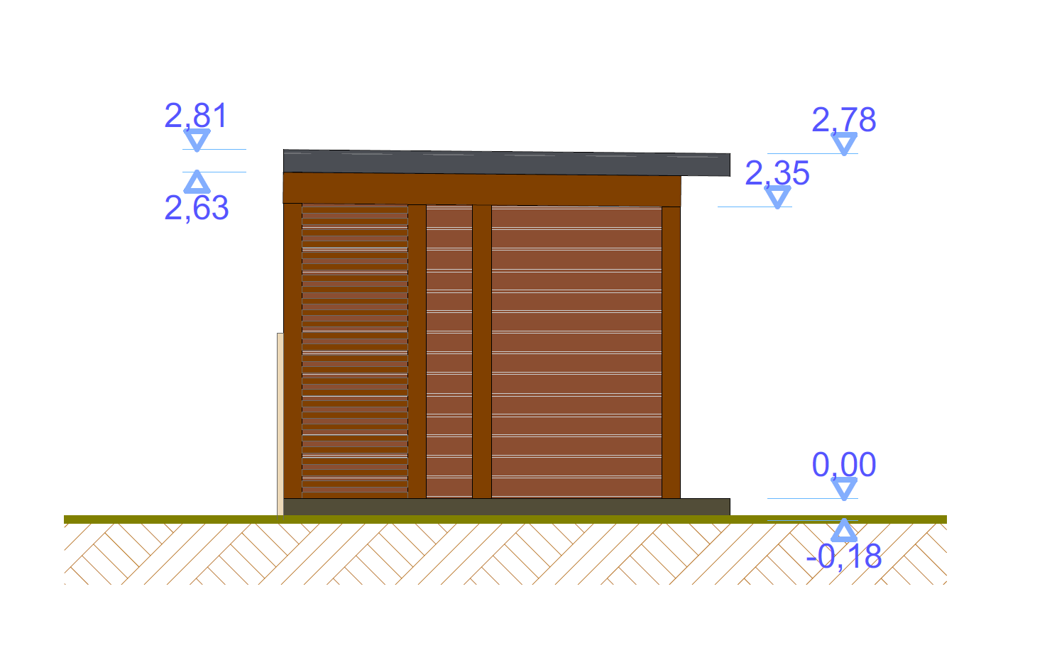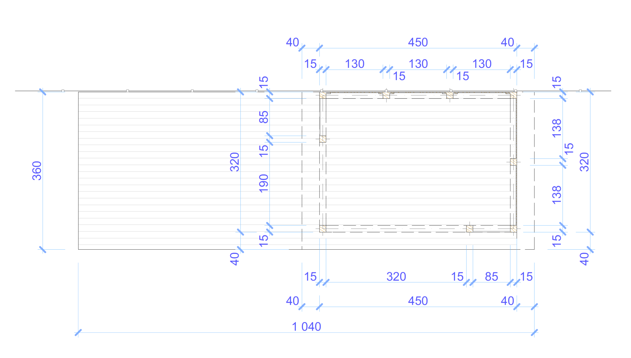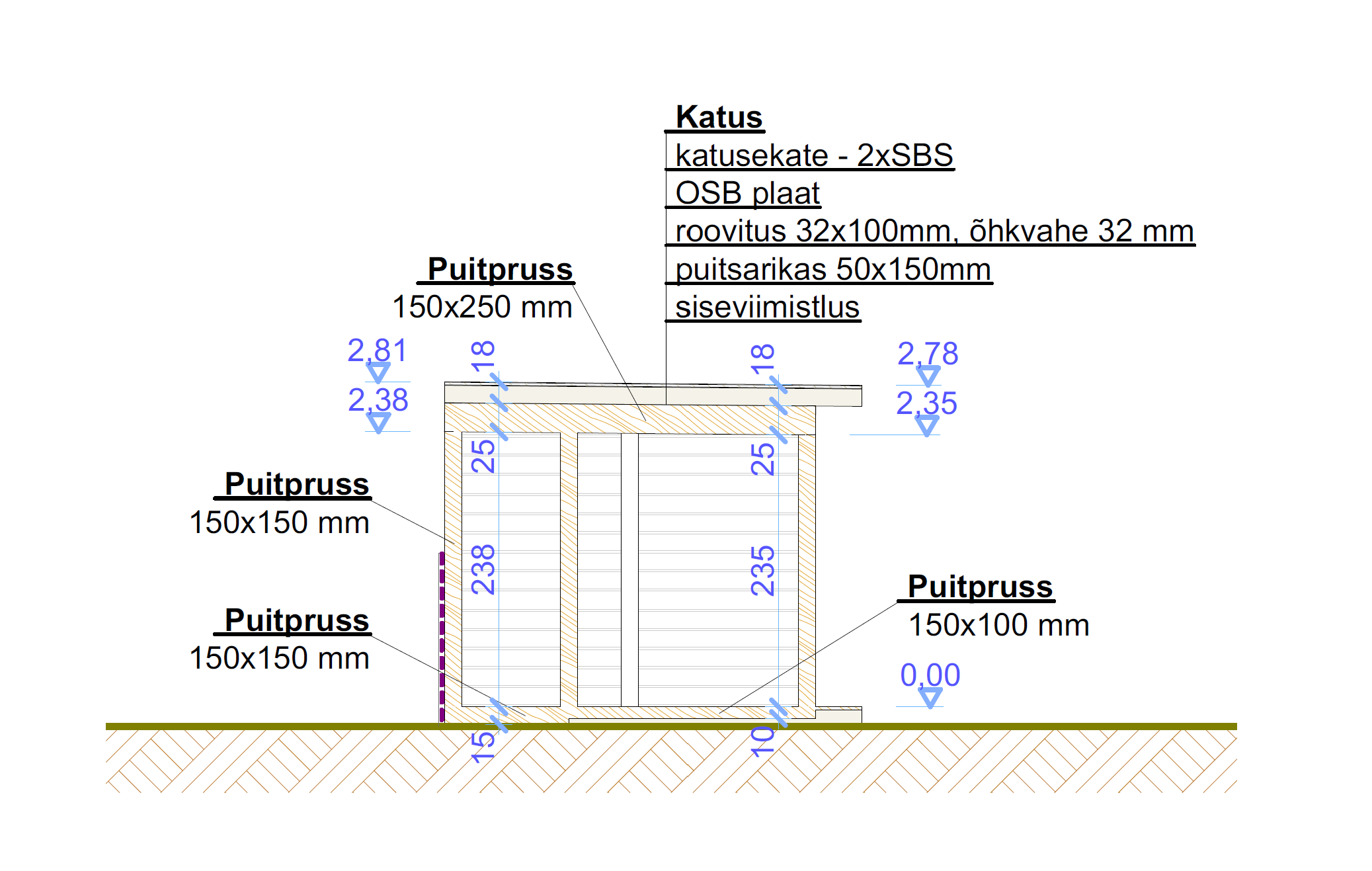 Mõõdud saab joonistelt, majal oleks 2 külge, tagumine ja parem laudadega kinni, konstruktsioon liimpuit.