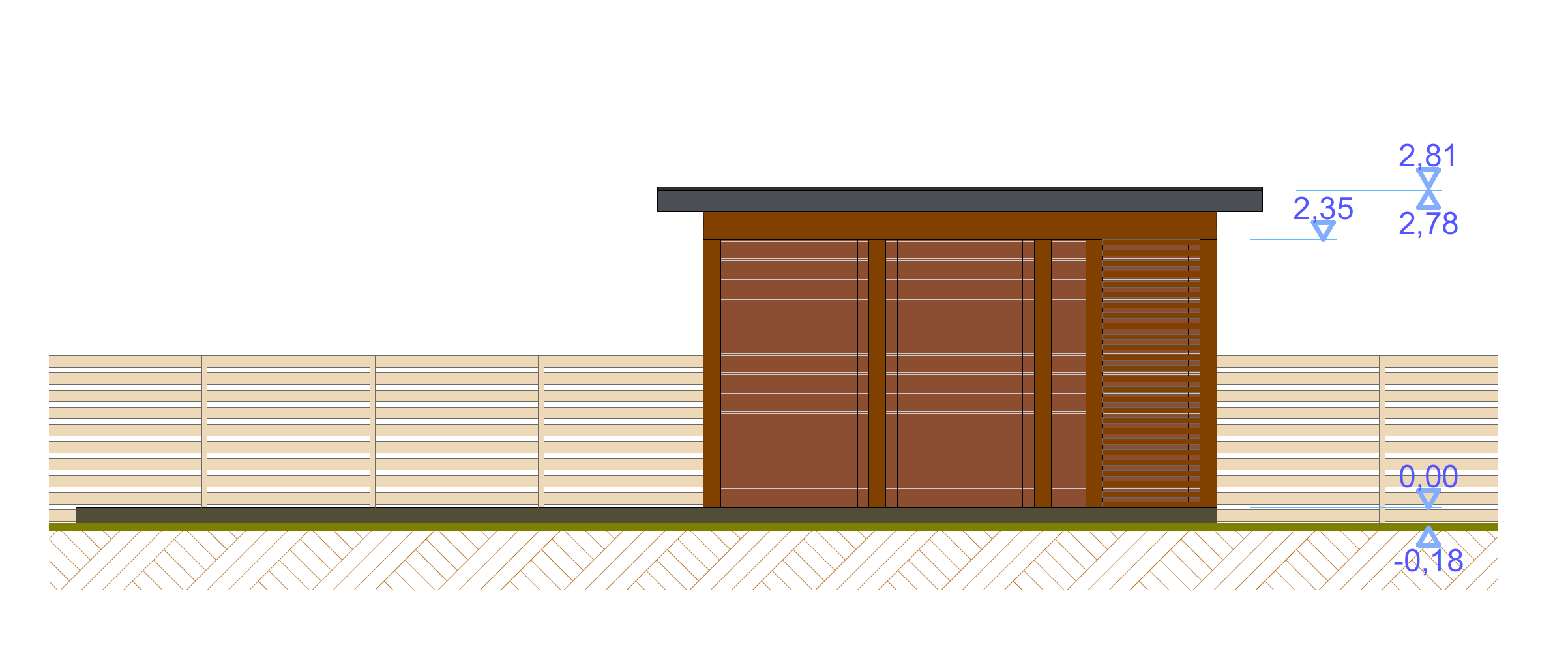 Maja konstruktsiooni tahan hoida võimalikult puhta, täisnurkadega ilma põõnadeta (vaata stiilinäidet), katuse osa ulatuks üle esimese serva, oleks valgustite jaoks ruum, eesvaates paremal nurksein, kuhu taha jooksevad esikülje klaasuksed kokku.