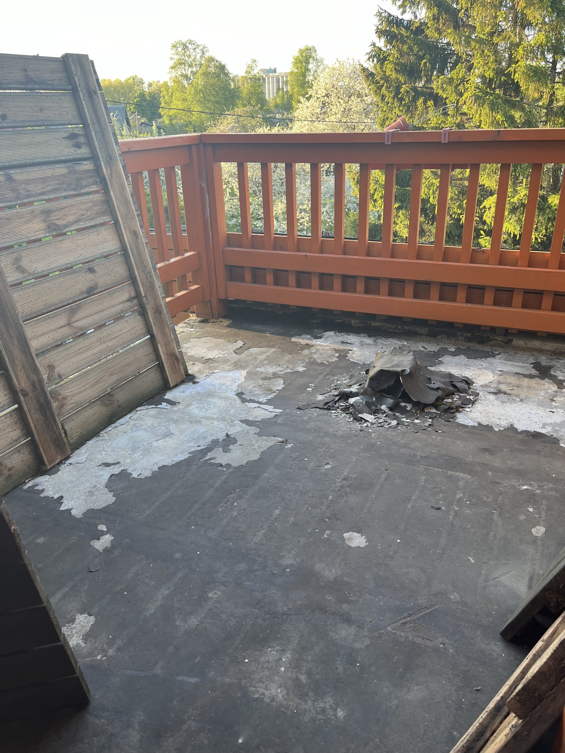 Rõdu suurus ca 8m2. Vaja eemaldada lahti koorunud vana aluspind. Paigaldada uus rullmaterjal.