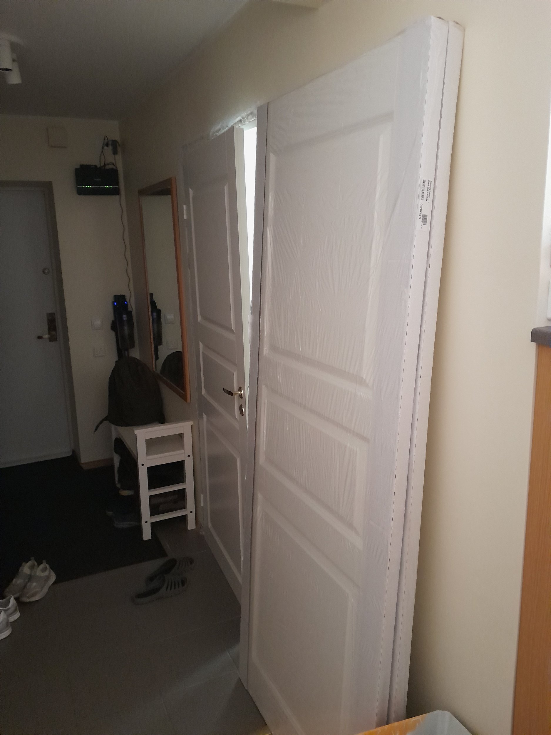 On vaja välja vahetada 2 siseust uute vastu. Uste vahetus koos lengiga ka viimistlusega (liistude paigaldus). Ilma lävepakuta. Uued uksed ja lengid on kohal.