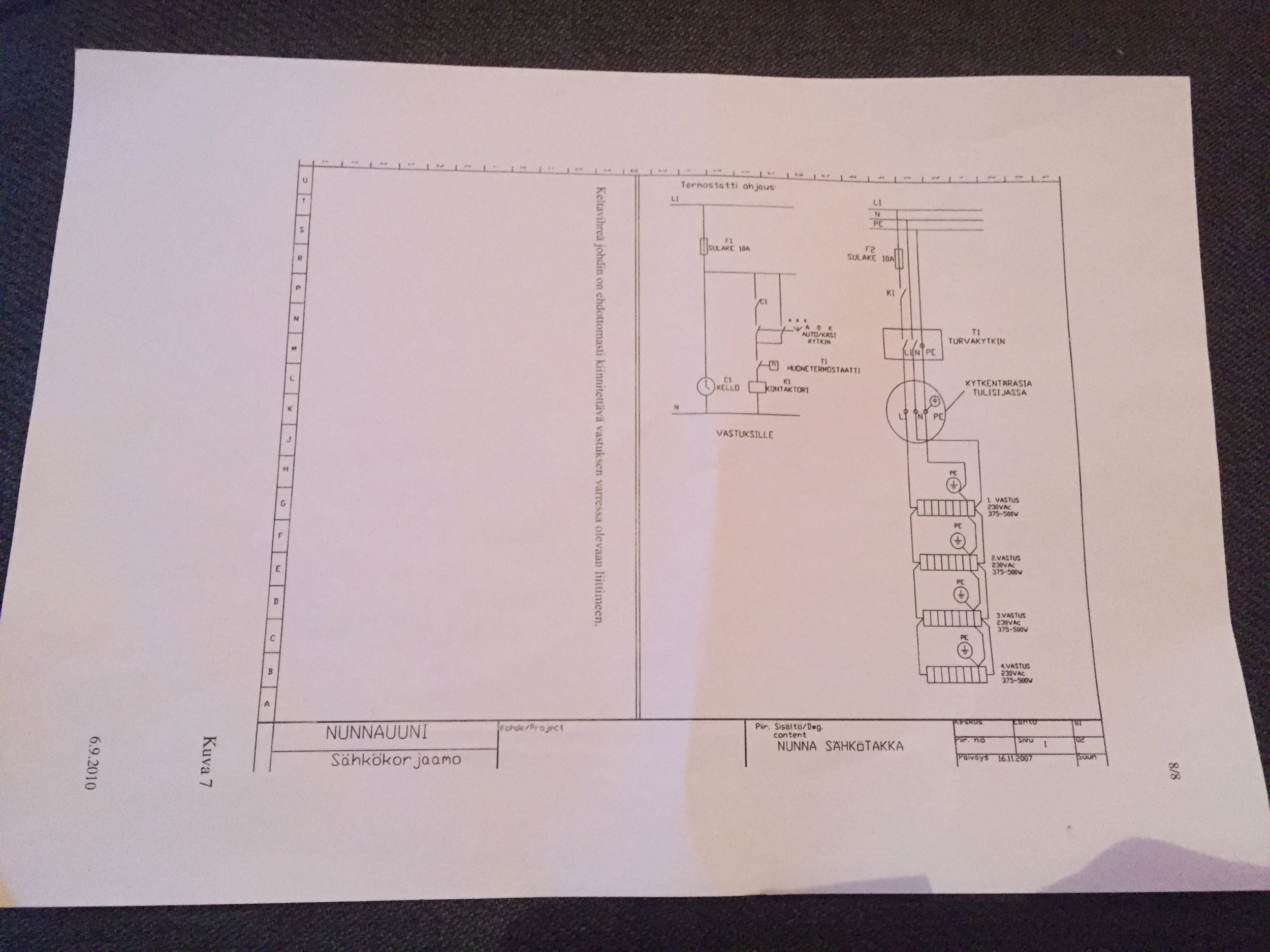 1) ahju tennid, vaja kaitse, termostaat, eelistatavalt ka kaugjuhitav (wifi) lüliti (vt Nunnauuni skeem), kaugus kilbist u 5 meetrit,