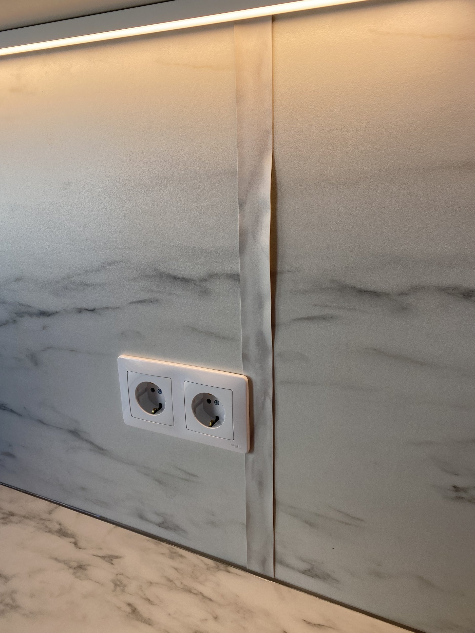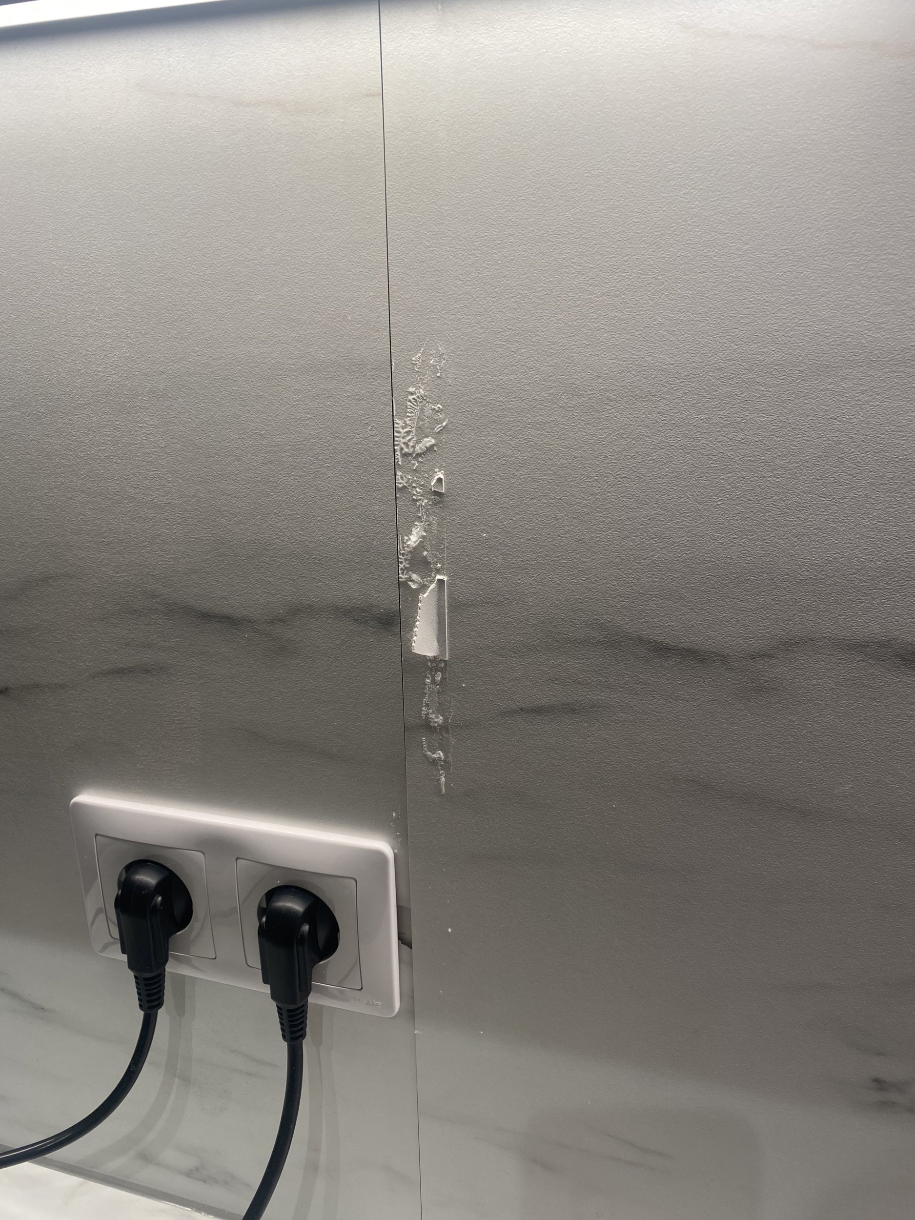 Palkasin firma, kes tegi meil kapitaalremonti. Köögi tagaseina riba näev jube välja. Proovisin seda super liimiga parandada, aga kahjuks ei õnnestunud. Tõmbasin selle ära ja näib, et sealt stepsli juures veel katkime koht mis tuleb peita, mida soovitaksite? Kuidas saaksin parandada?