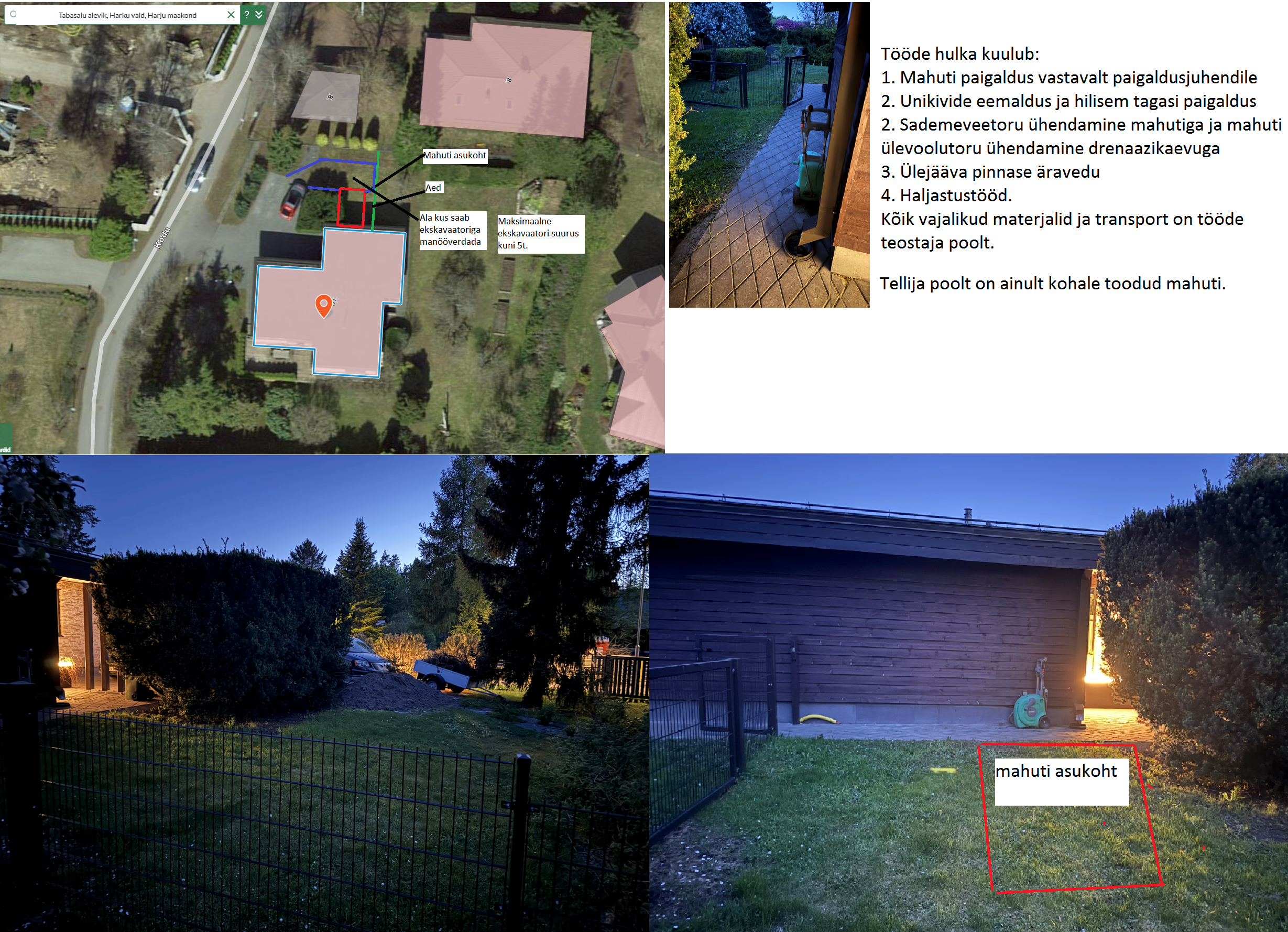 Paigaldada eramajale sademevee kogumismahuti. Täpsem tööde kirjeldus lisatud pildimaterjalide juurde.