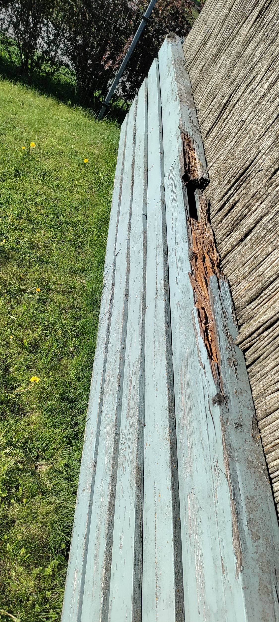 Rõdupiirete vanade (mädanenud) puust osade osaline vahetus immutatud ja värvitud puitmaterjaliga.