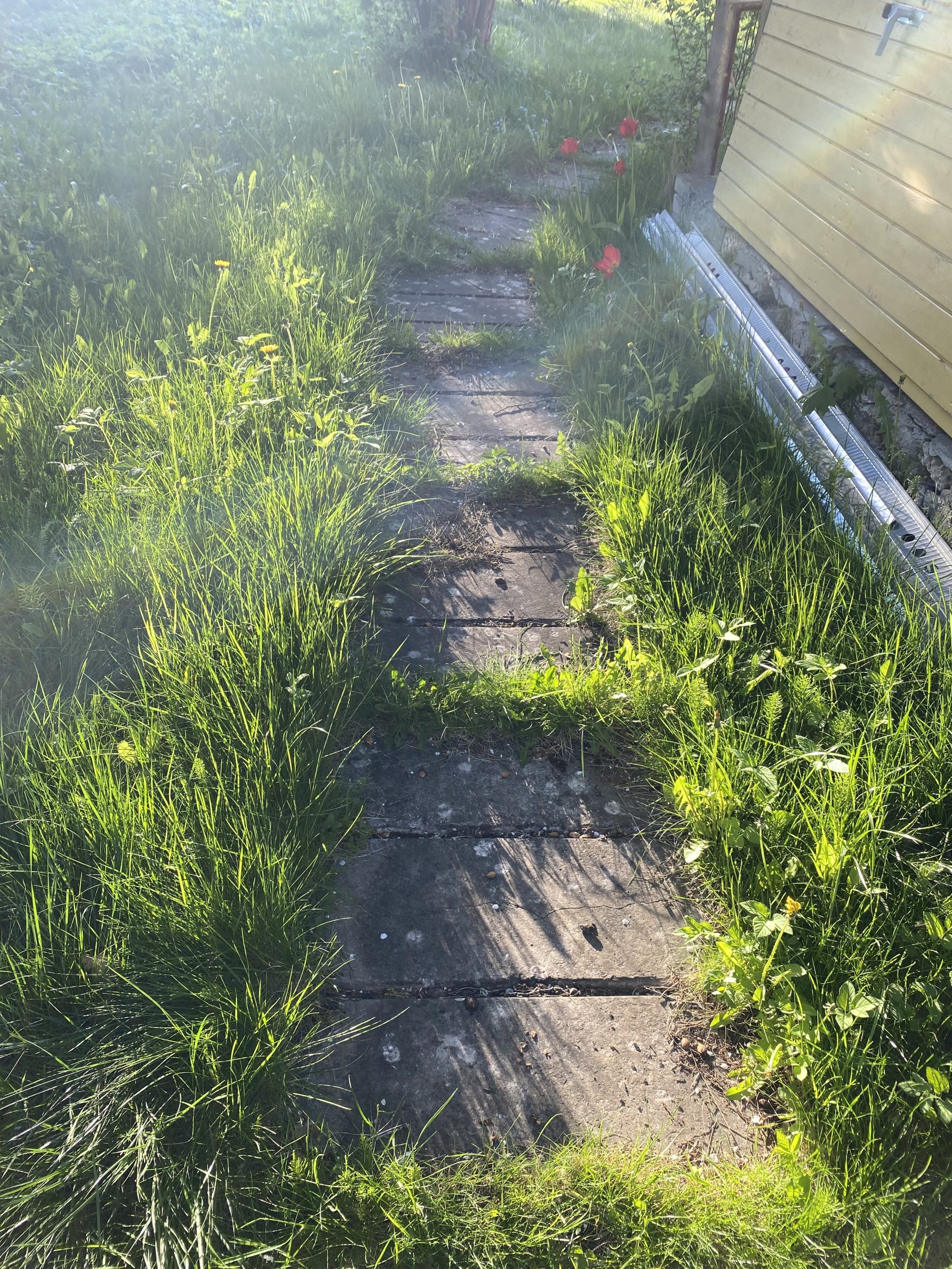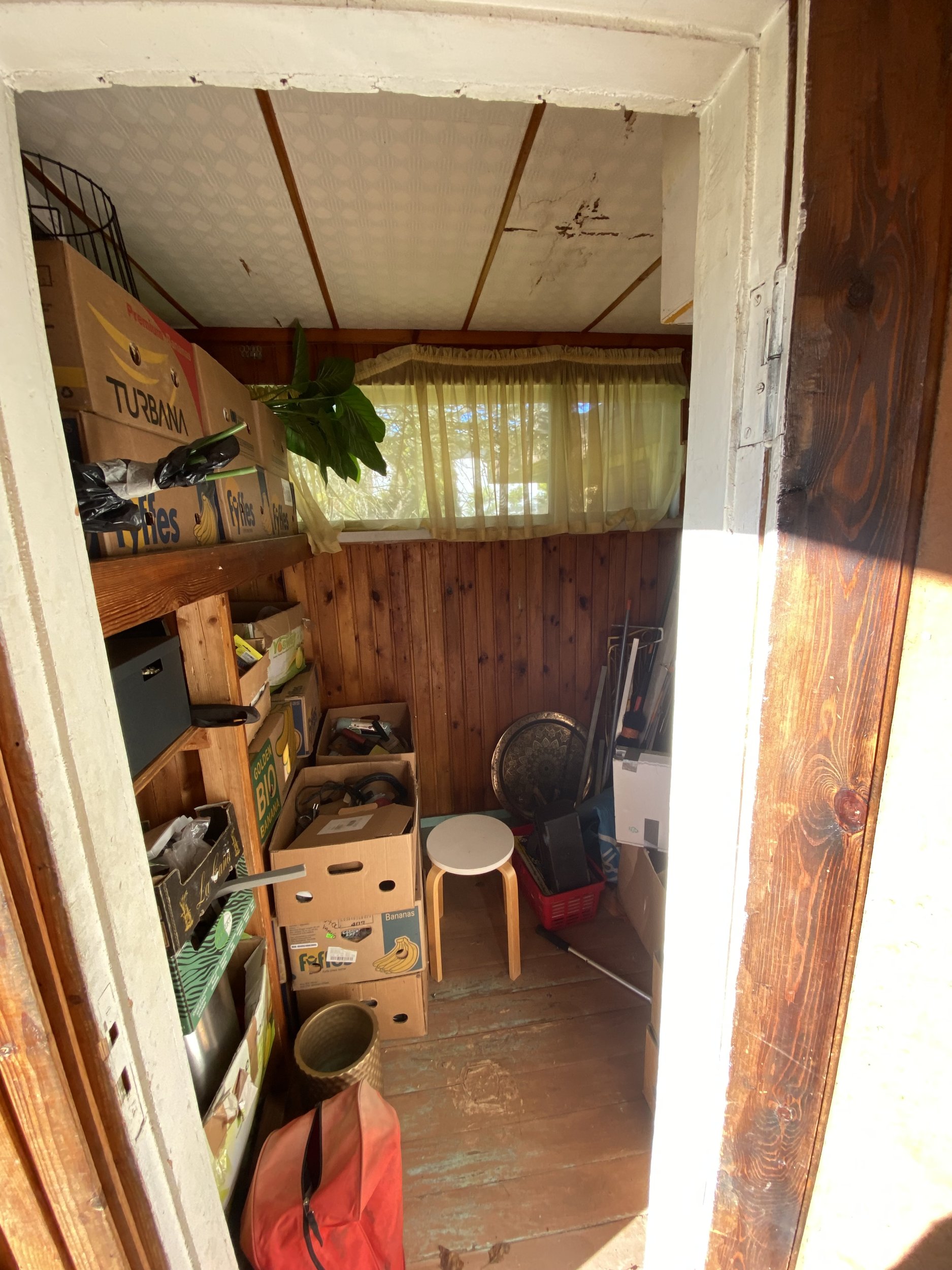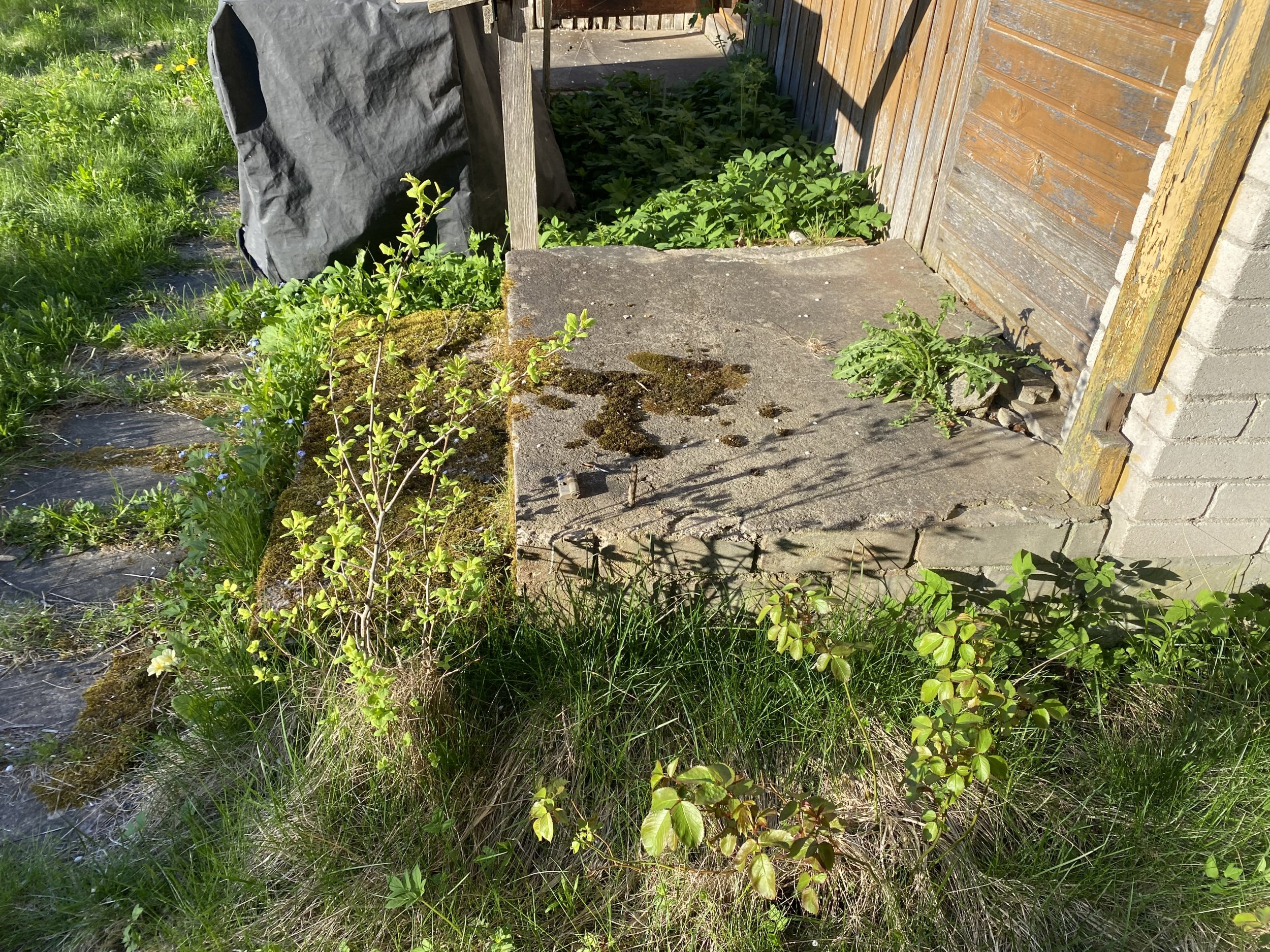 Hoonel on mõned trepid, mis tunduvad olevat laotud tellisest, lisaks ilmselt kuivkäimla kogumiskast ja mingi kast ka elupuu all.