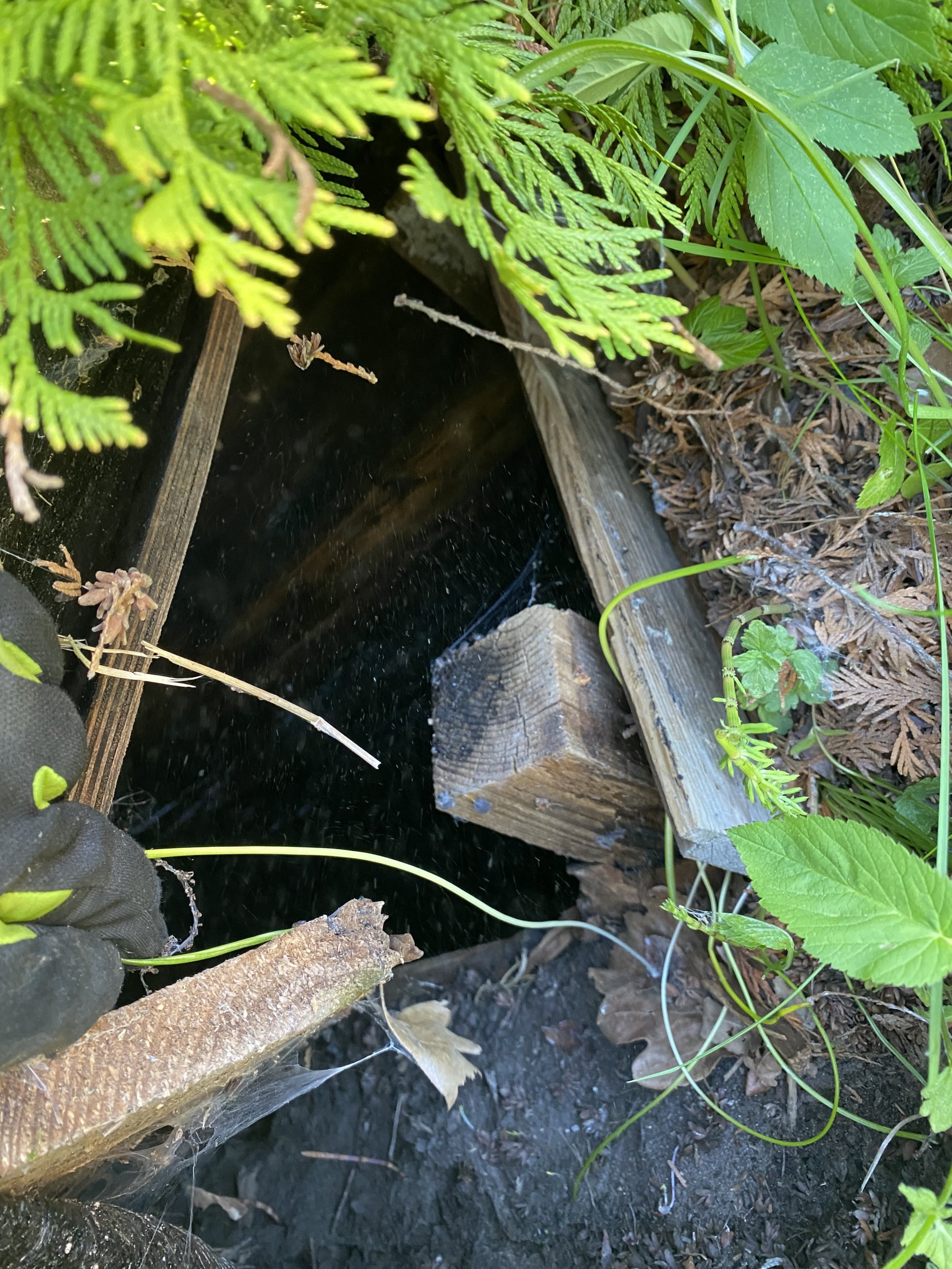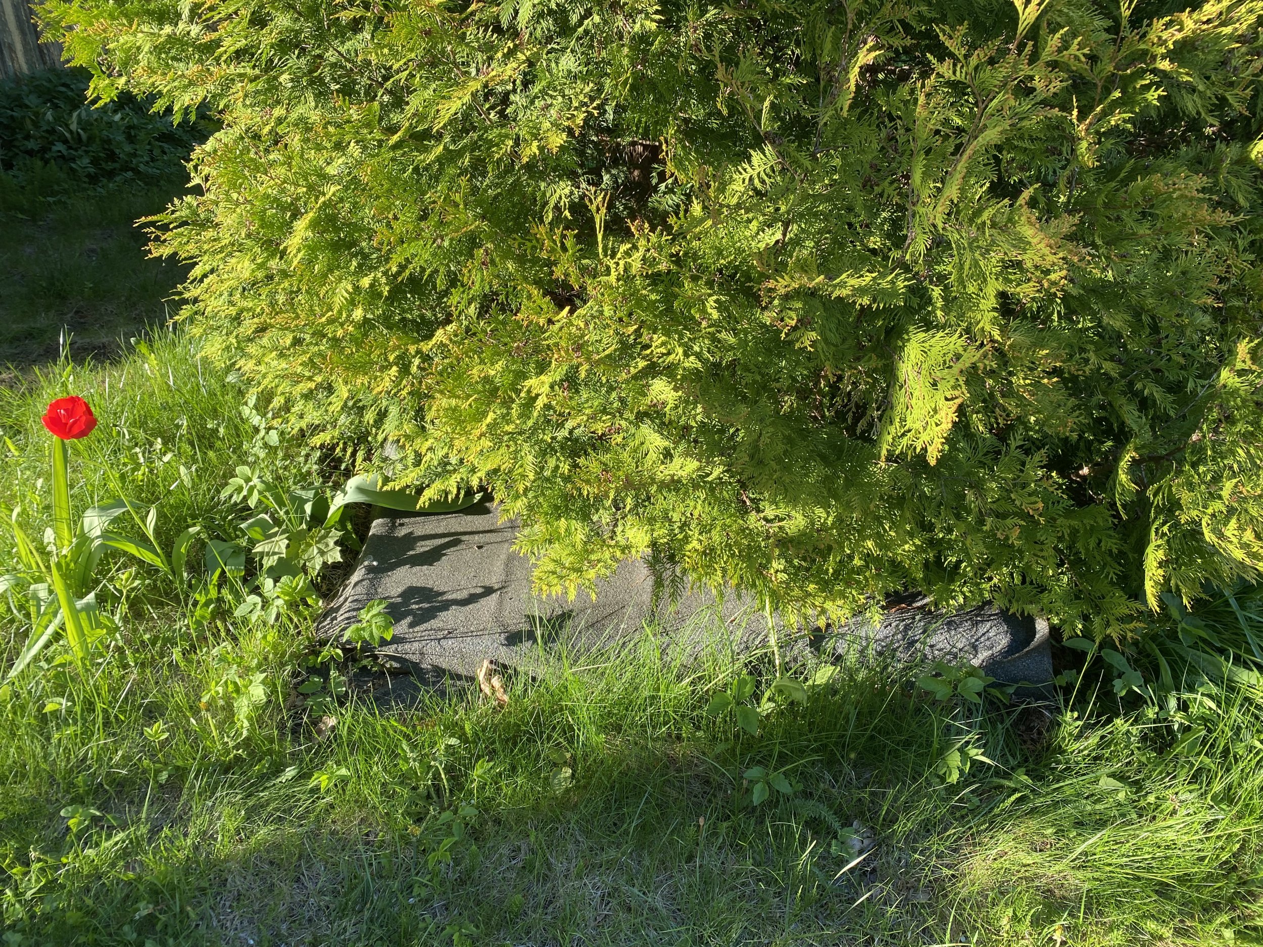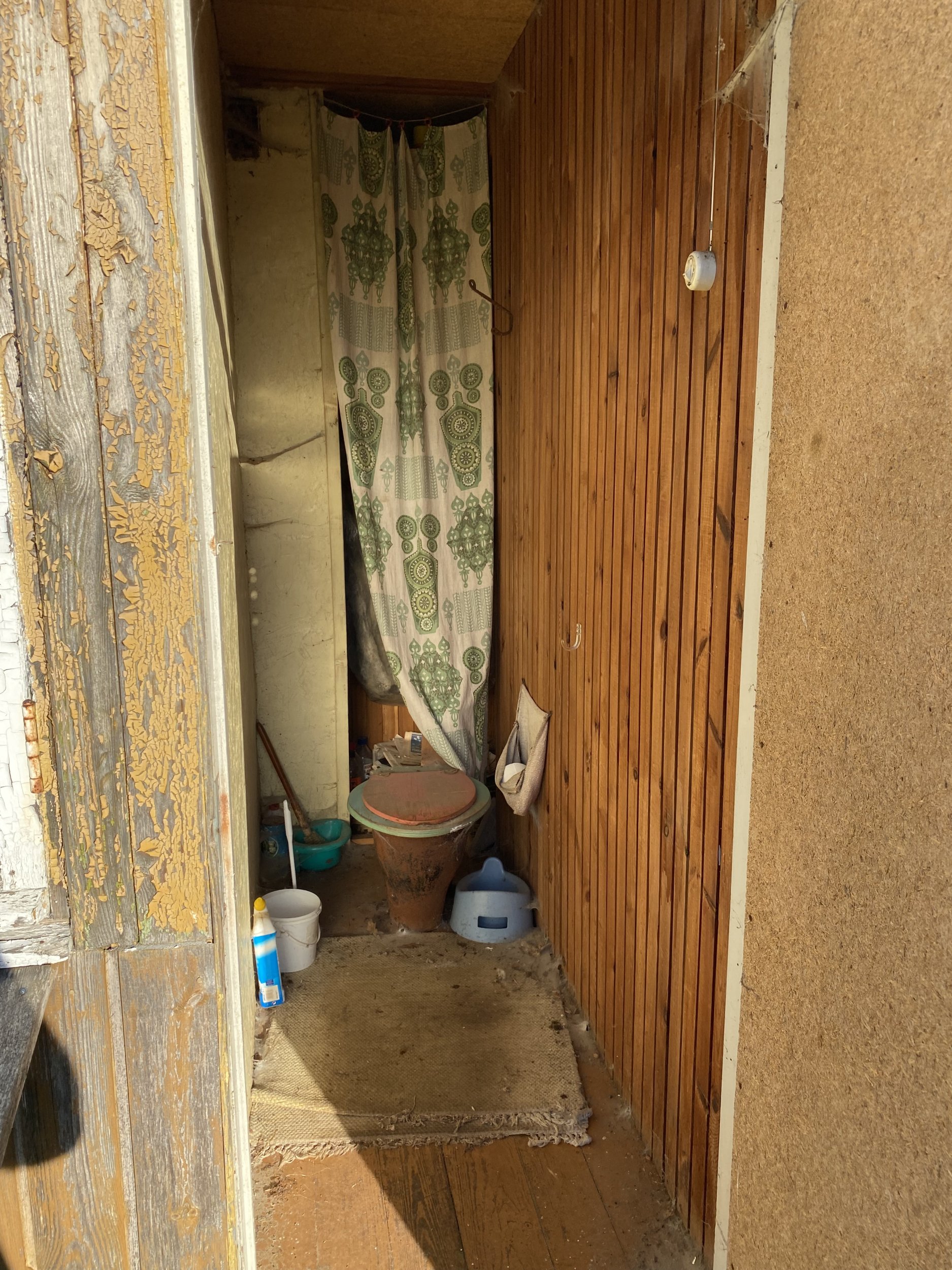 Hoonel on mõned trepid, mis tunduvad olevat laotud tellisest, lisaks ilmselt kuivkäimla kogumiskast ja mingi kast ka elupuu all.