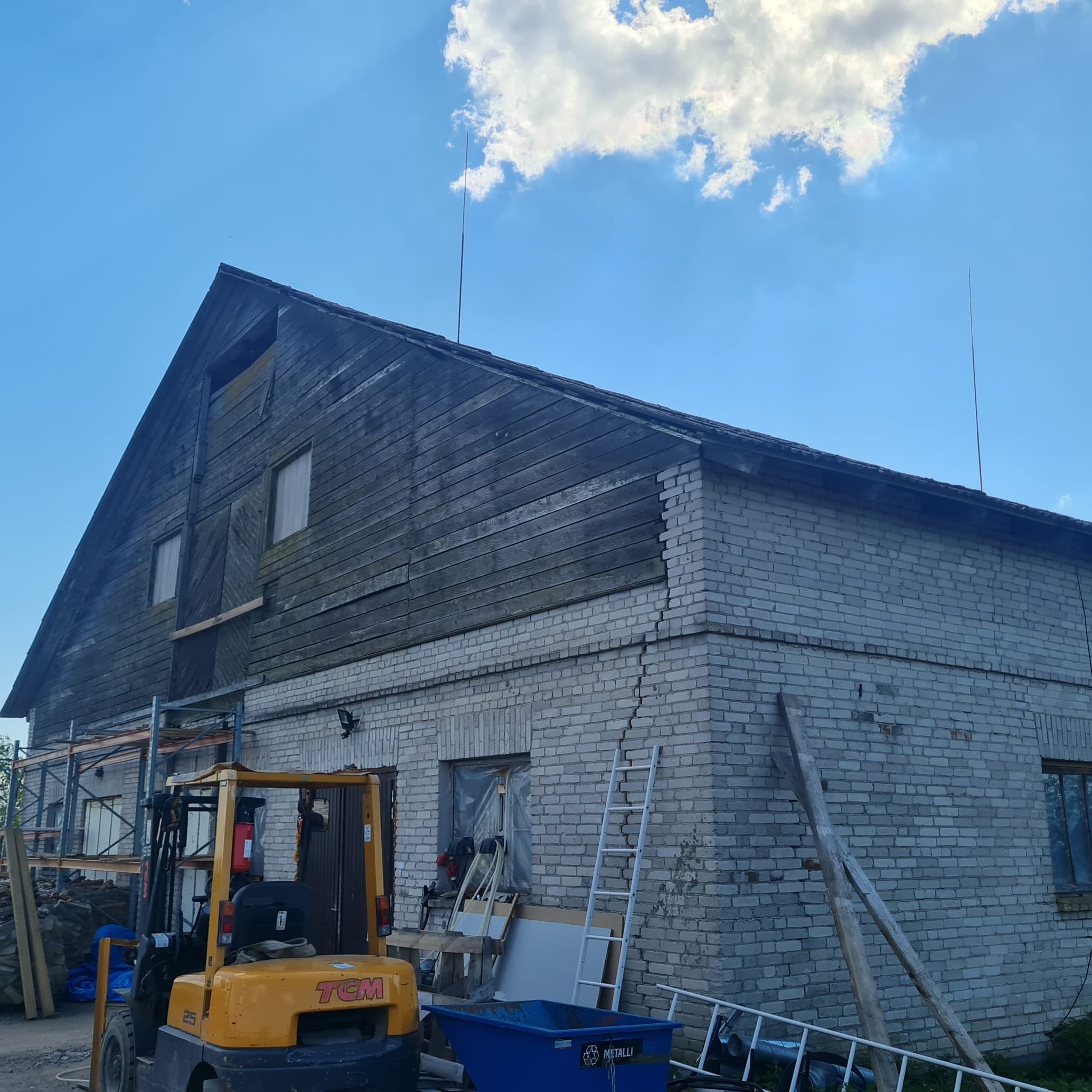 Pakkumises katuse vahetus, eterniidi eemaldamine ja utiliseerimine, aluskatte ja roovistiku paigaldus, plekk T20 profiil (seda saab muuta), kandekonstruktsiooni kontroll ja parandus, otsakelbad voodrilauaga värvitud kujul (krunt+ värv)