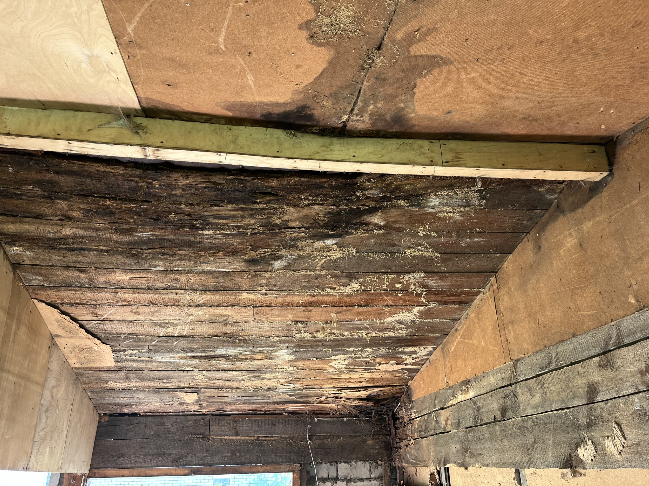 Katuse kihtideks pealtpoolt on eterniit, klaasvill, tõrvapapp, laudis ja kohati õhuke tuuletõkkeplaat ja vineer. Paarist kohast on pikaaegne läbijooks aluslaudise ära mädandanud, seega tuleb tähelepanu pöörata turvameetmetele.