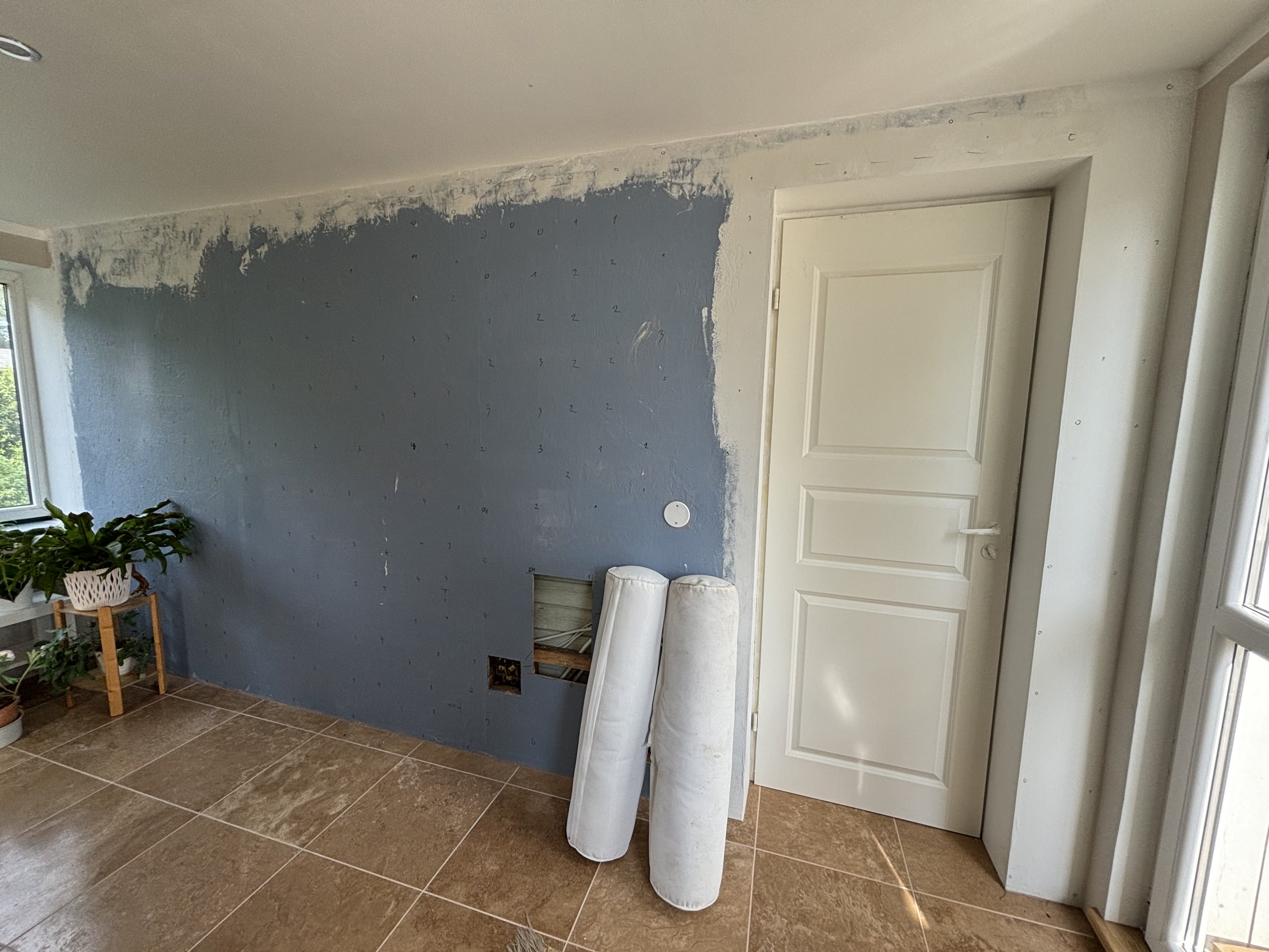 Ühe seina sirgeks ajamine ja sellele vuugita 600(l)x1200(k) plaadid seejärel seina panna. 6 rida plaate, 3M 60cm plaaditav laius. Ruumi kõrgus vaiksem kui 2400, seega alumised plaadid lõikuda.