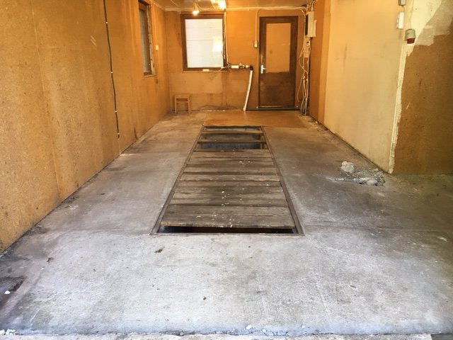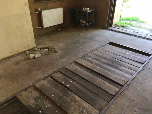 Garaaz 32m2, poolsügav kanal keskel. Üks seina äär vajunud ja kohati alt seetõttu ka tühi.