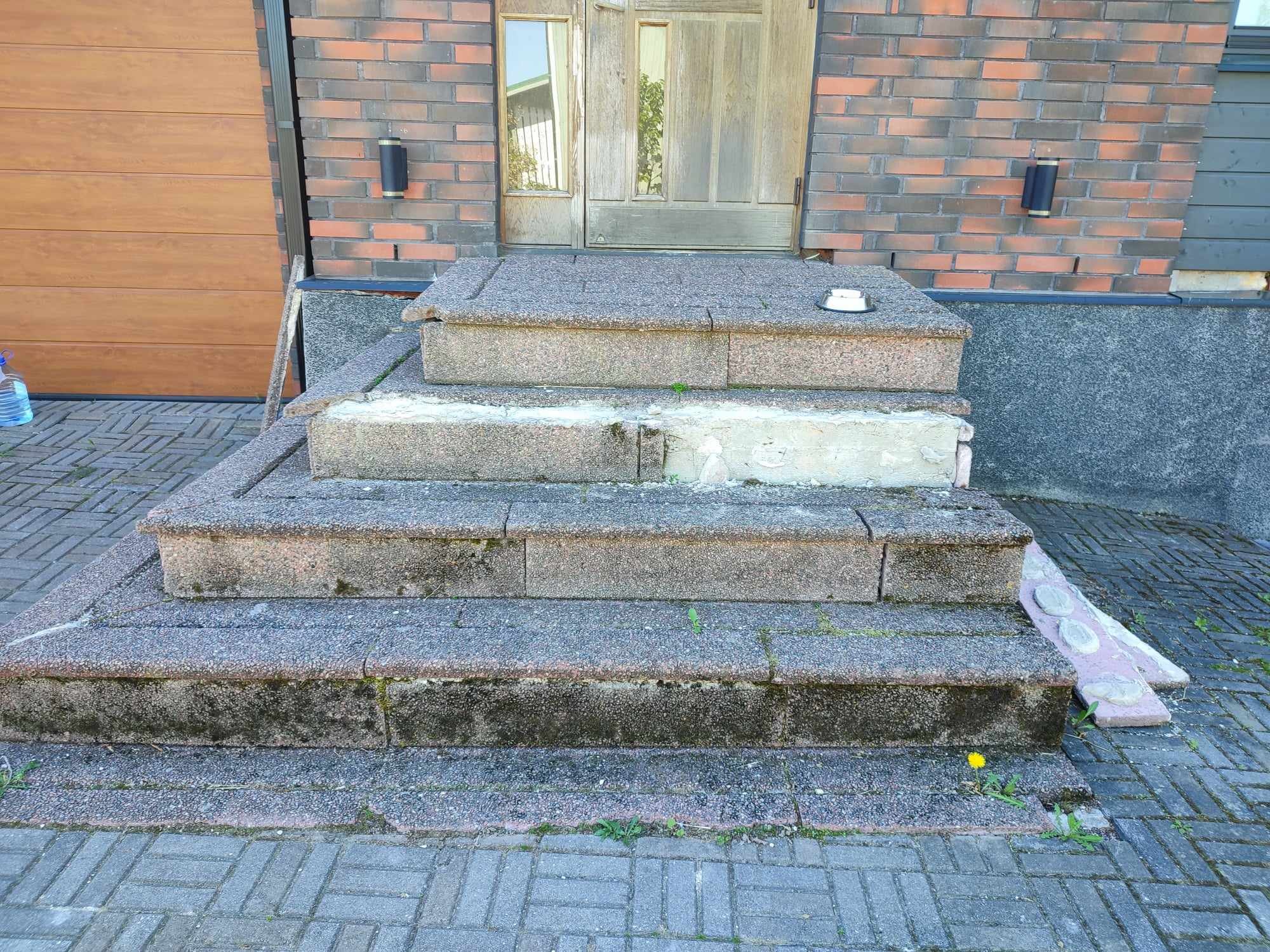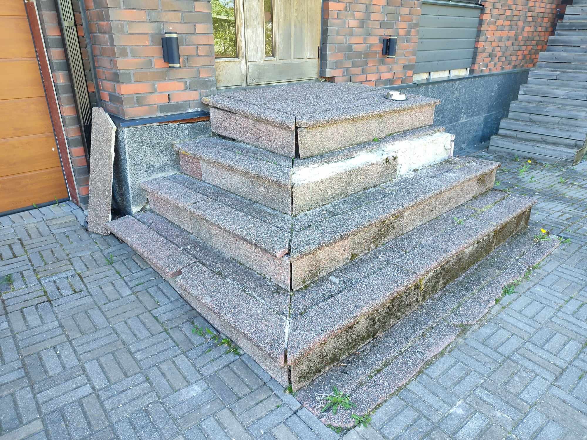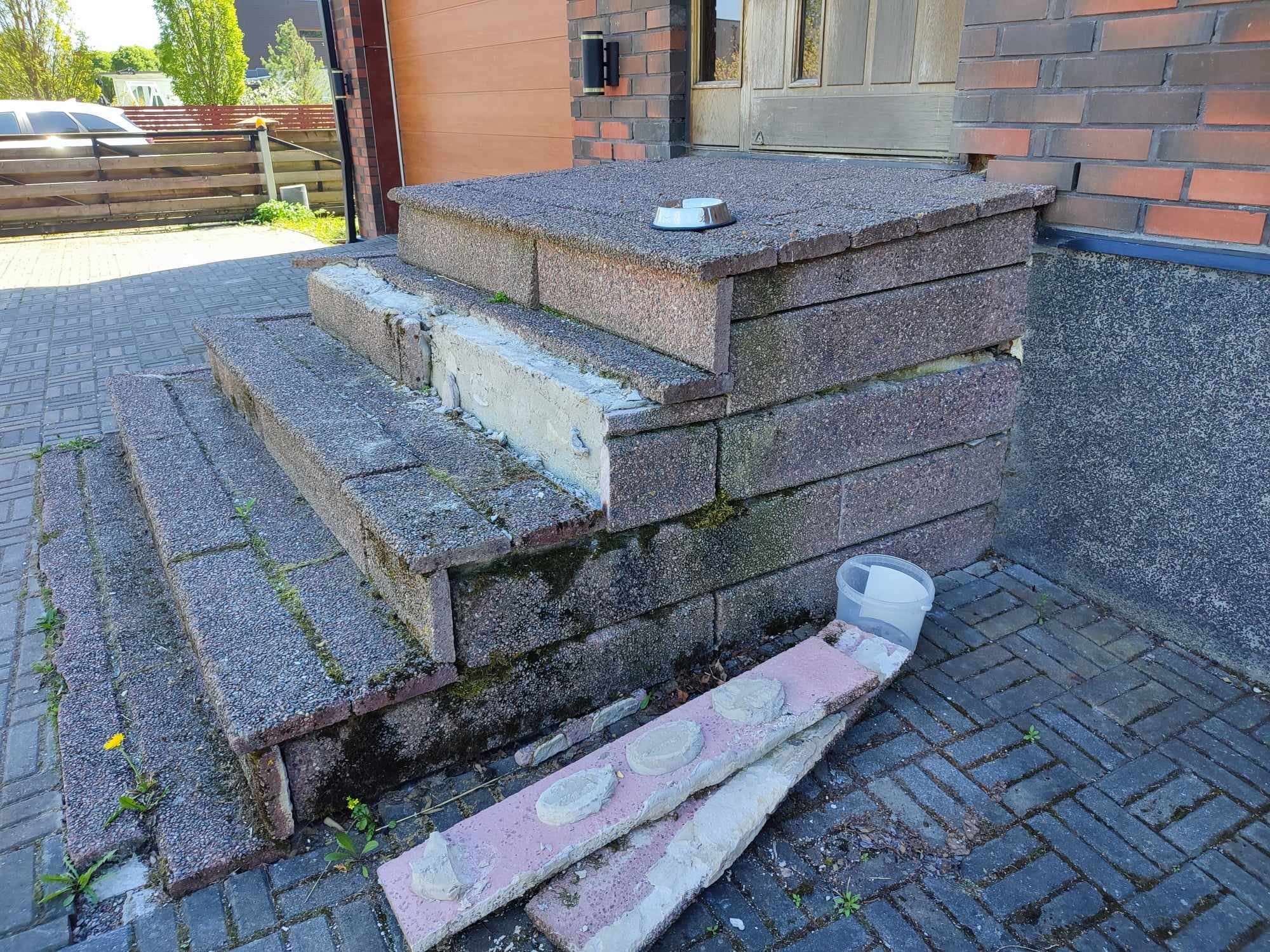Tere. Lammutamine, utiliseerimine, uue trepi paigaldus, betoneerimine. Pestud betoon kantakse otse trepi ilma plaatideta.