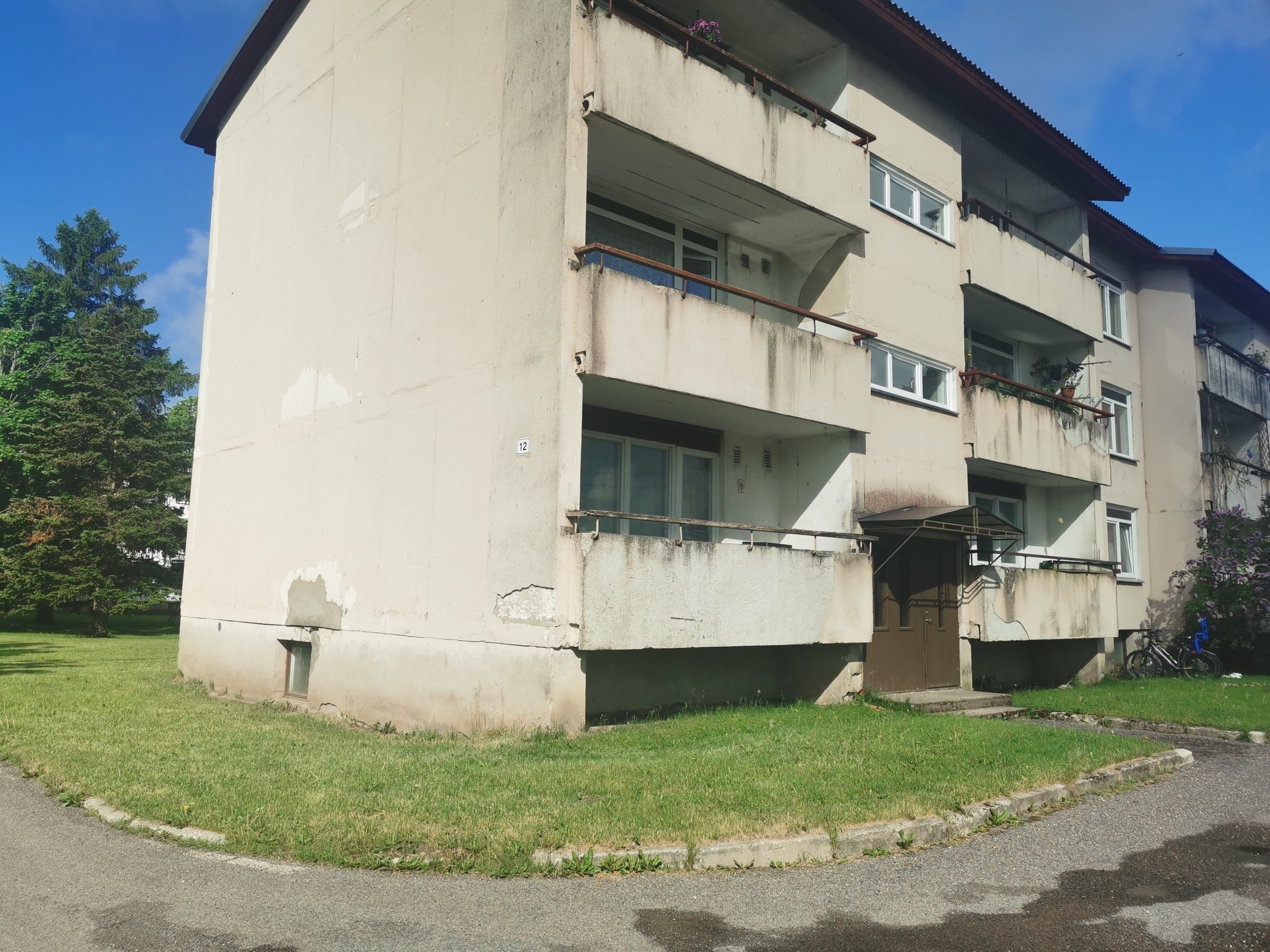 Kolmekorruseline paneelmaja (1982), 18 korterit, rõdud, 3 püstakut.