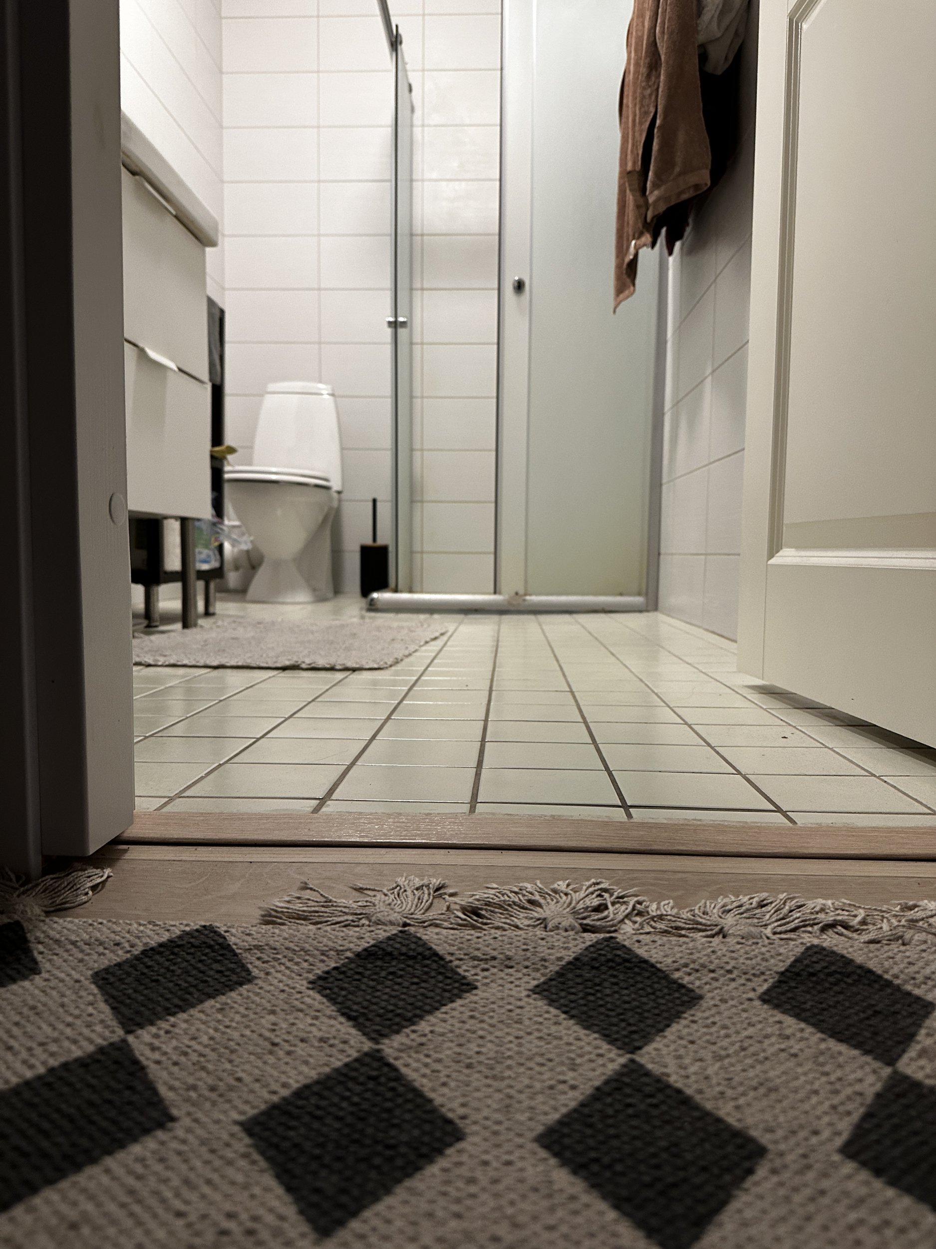 - Põrandale panna suured plaadid ja nii, et kogu põrand oleks üks sile tasapind, siis on lihtne pesta. Kui võimalik, siis soovin, et ka duššinurga osa jääks põrandaga ühte sirgesse tasapinda (ehk ei taha seda dušši äärt, millest peaks üle astuma jne).