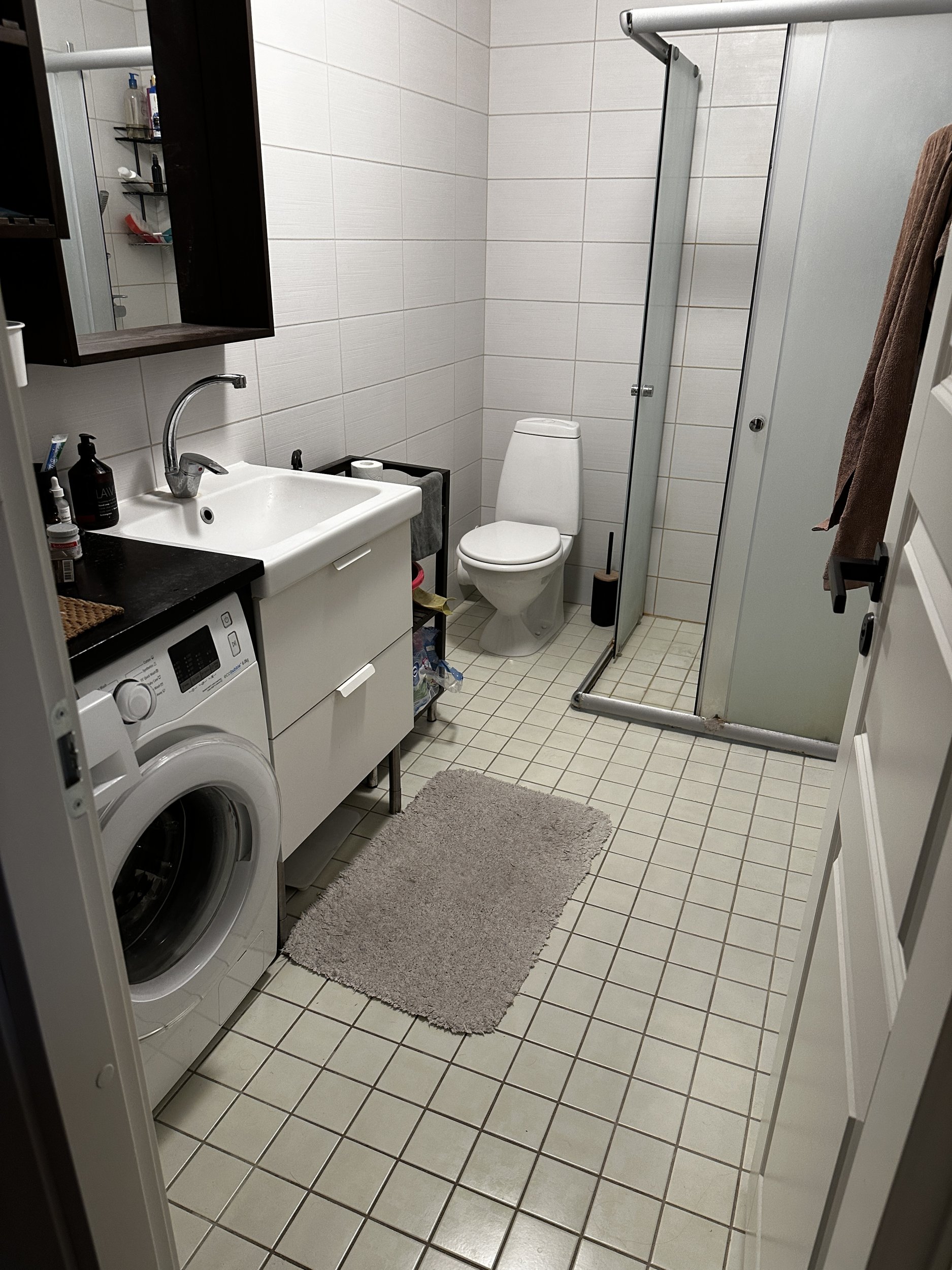 - Kõik seinad, põrand, lagi maha lammutada. Praegusest vannitoast jääks kasutusse vaid pesumasin. Põrandal on vähemalt 2 kihti plaate ja all elektriga põrandaküte. Seina kohta ei tea, kui mitu kihti seal on.