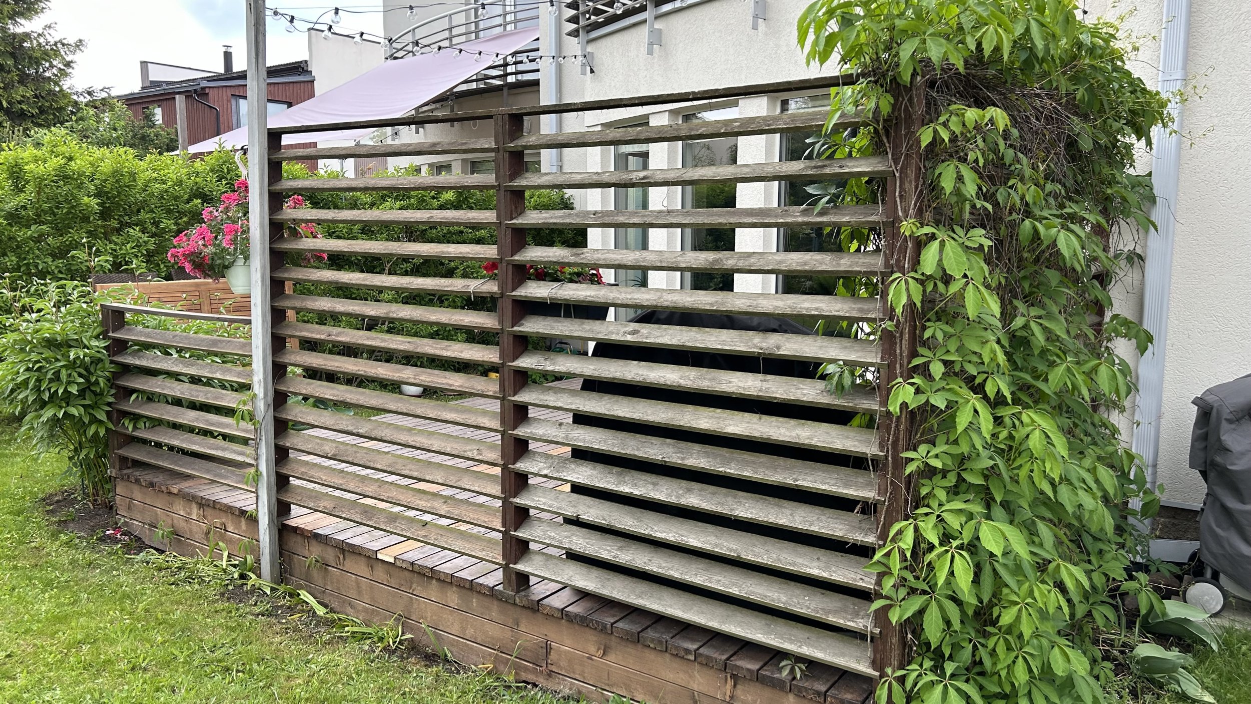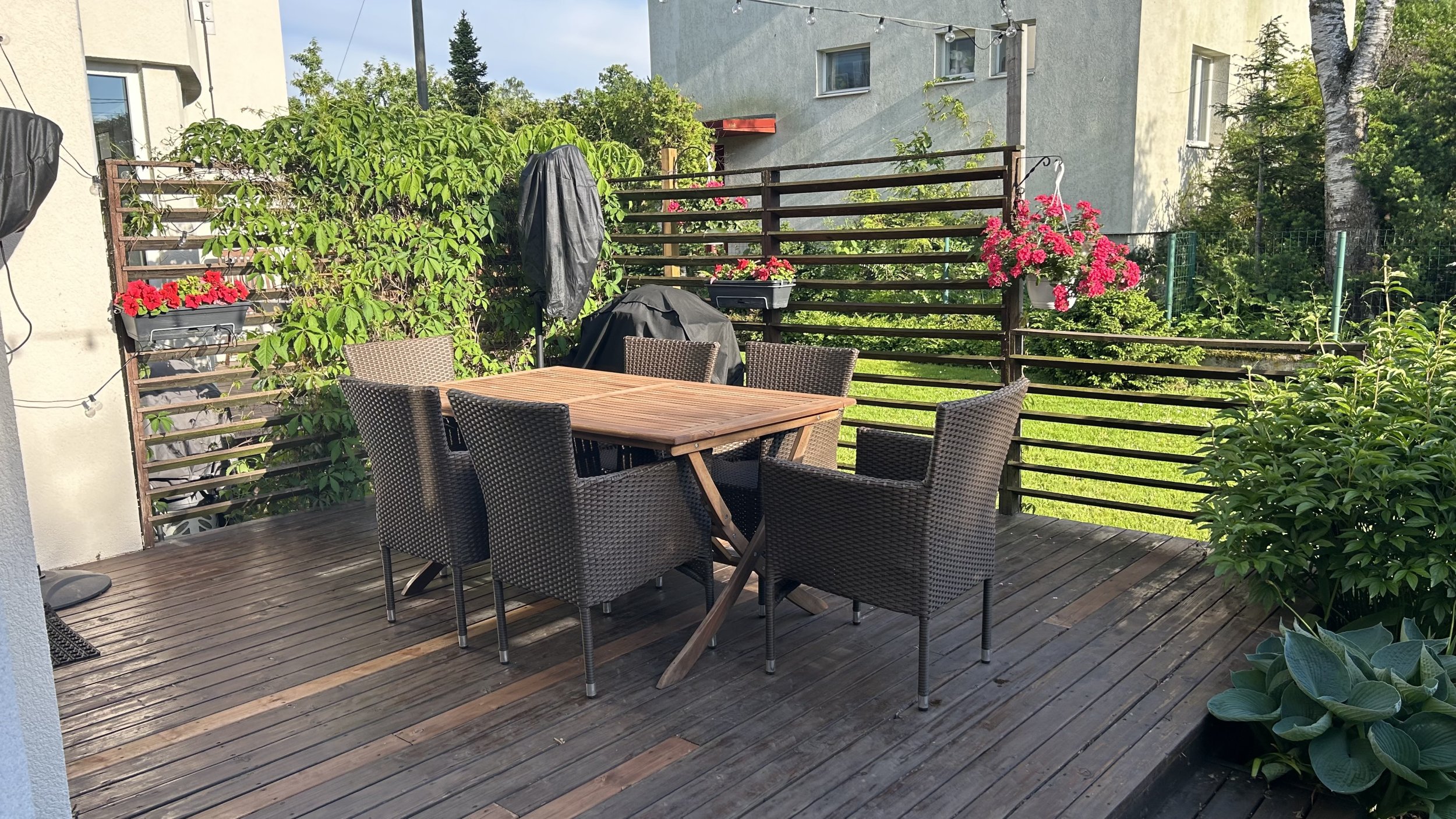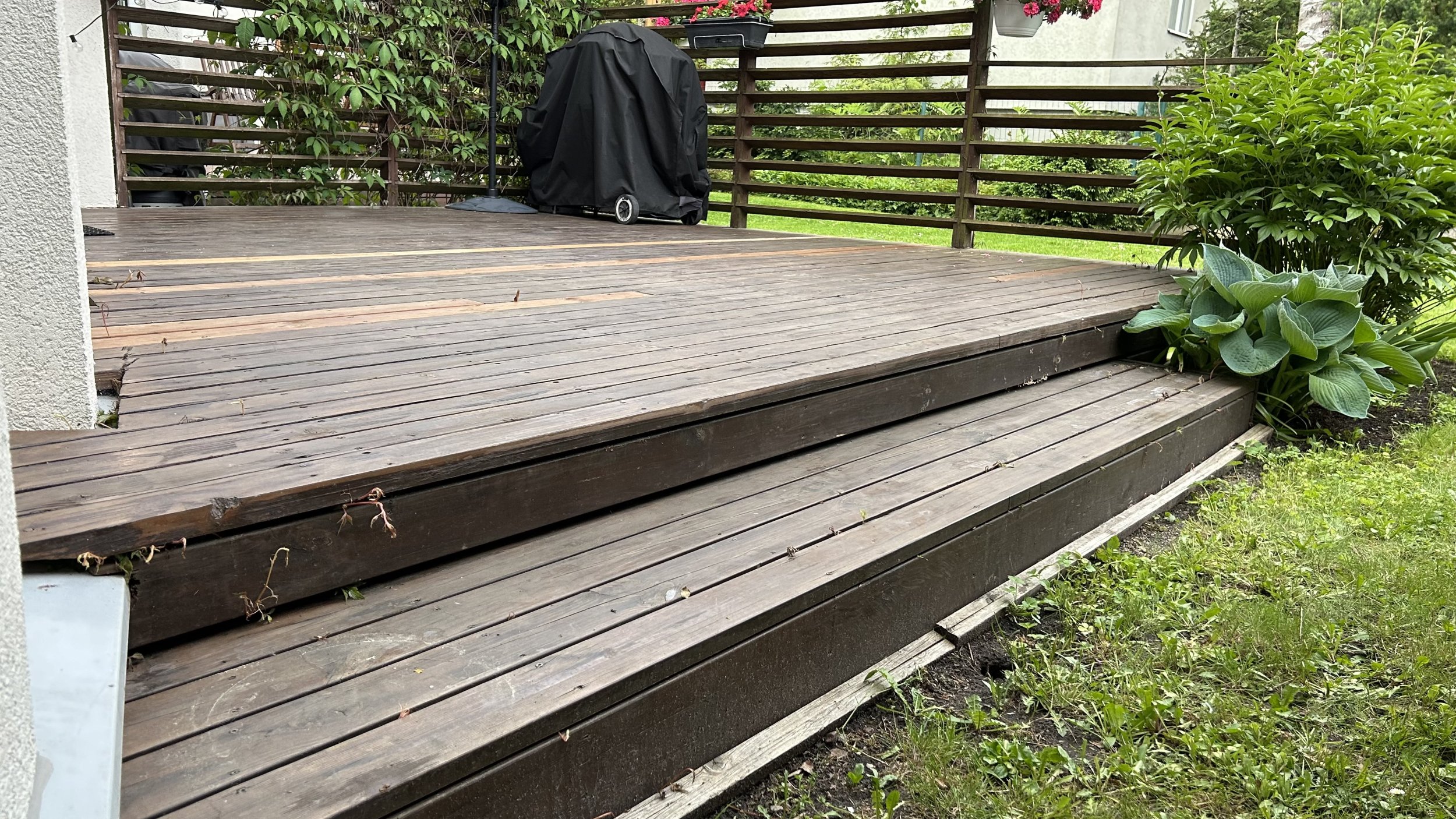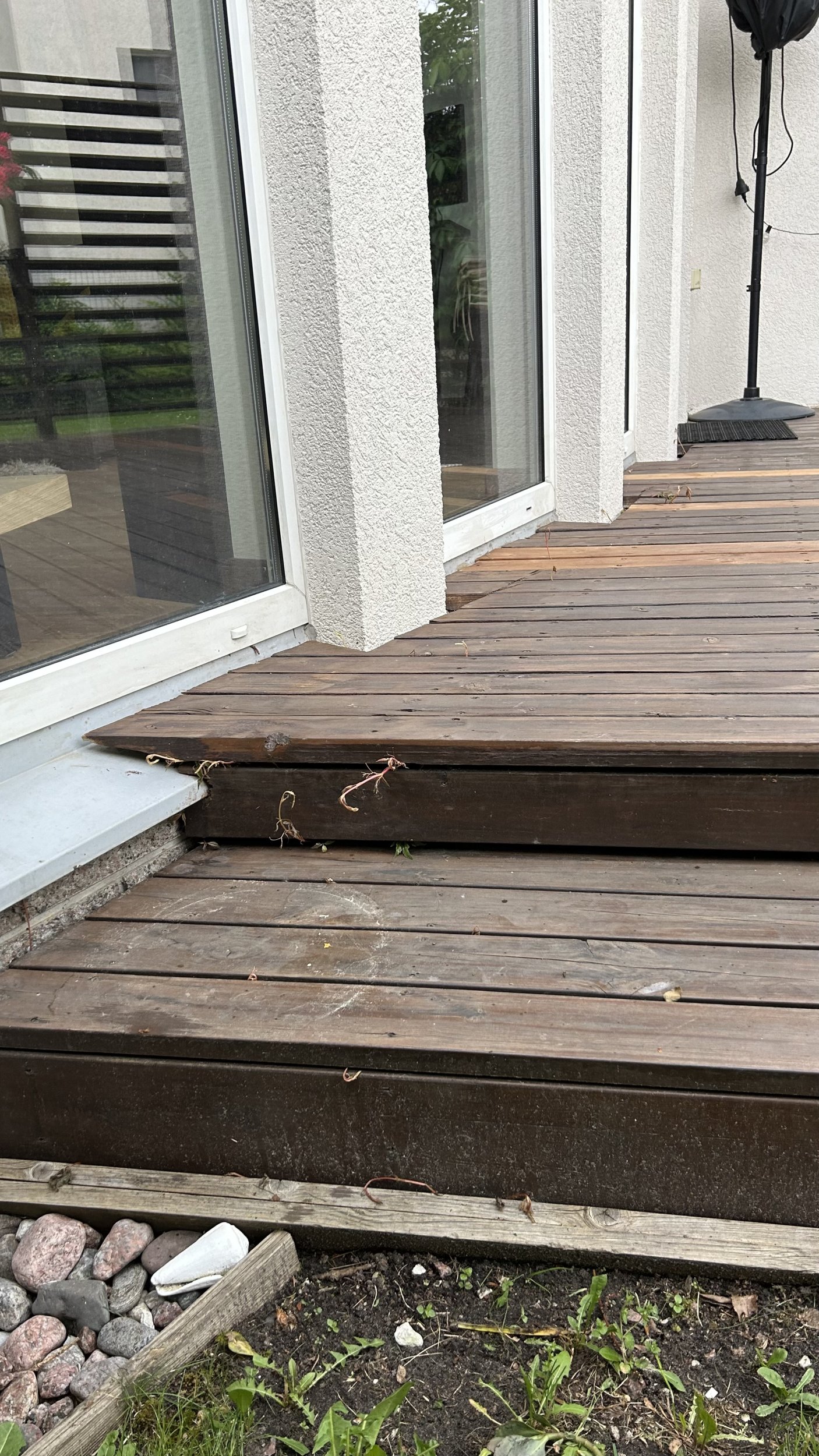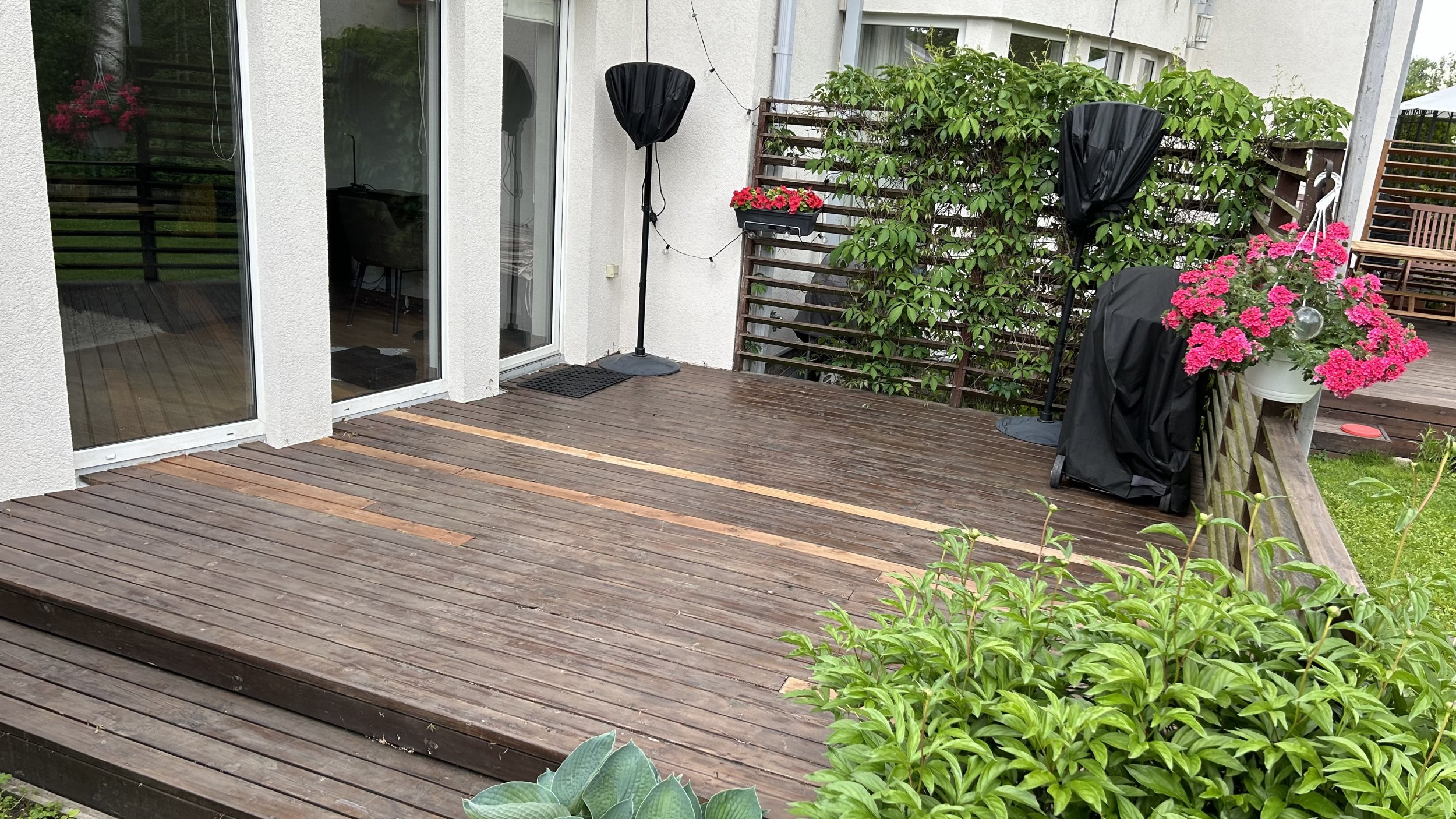 Vana terrassi talad on 2 kihti risti, mõlemad 50x150. Võib teha teisi ettepanekuid. Näiteks alumised 200x50 ja ülemised 100x50.