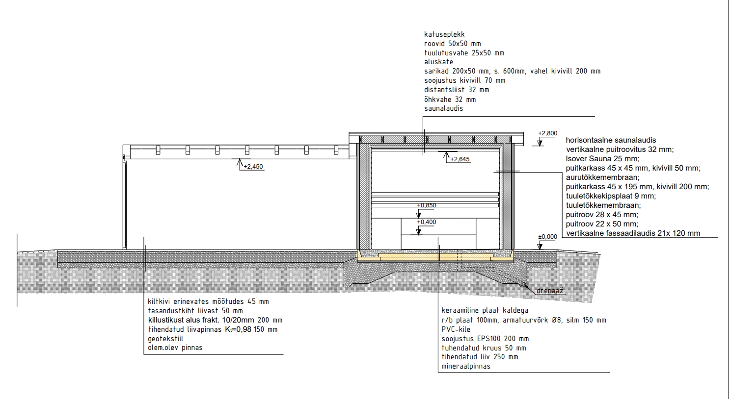Pakkumist soovin eriosadele lahti kirjeldatult ehk vundament(materjal+tööraha) jne. Sauna osas hind töörahale. Lisaks välja tuua ka materjalid, mida hinnapakkumises ei ole kajastatud, nt klaasid või aknad vms.