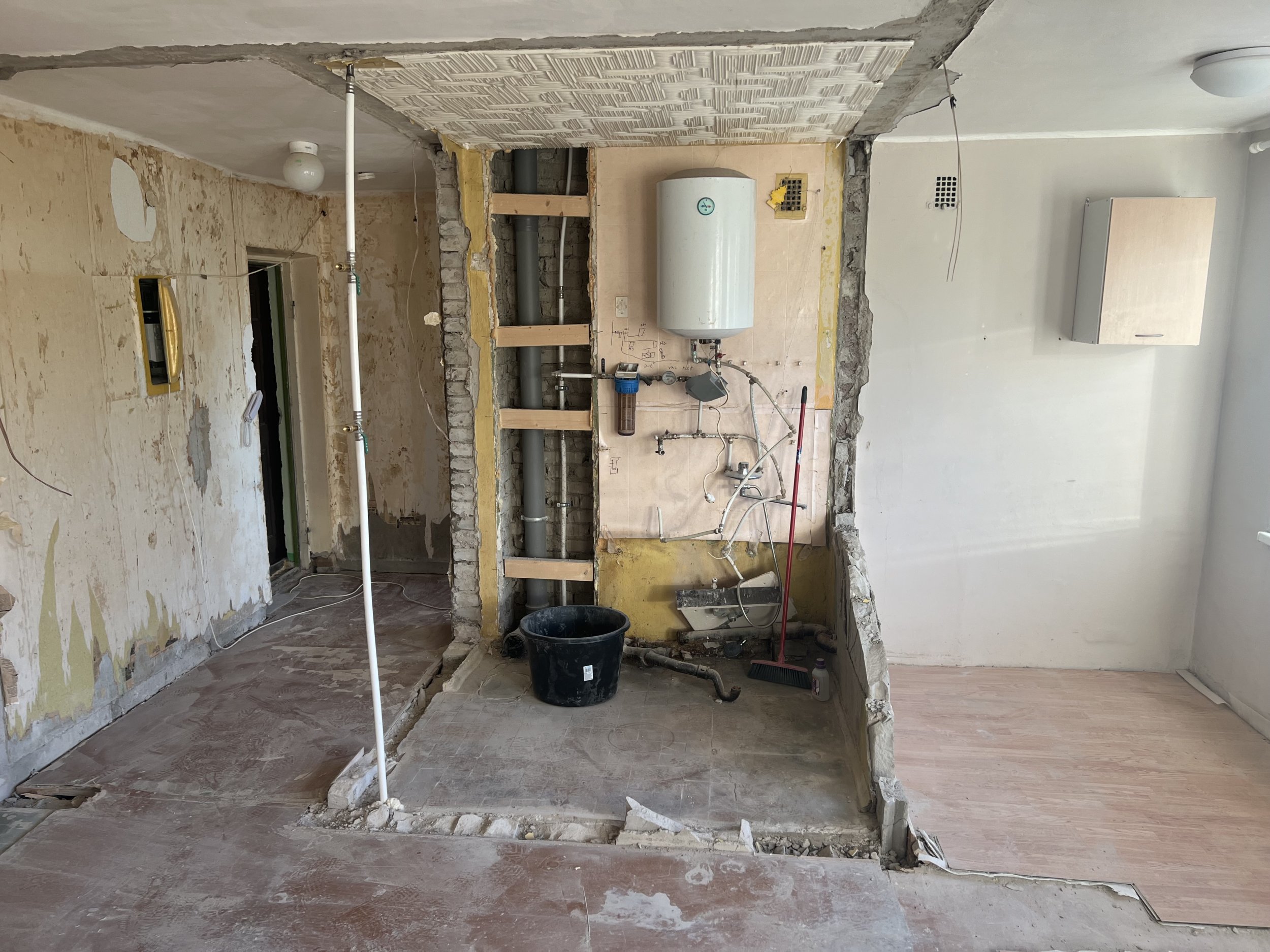 Soov saada vannituba, ja kööki ning üle korteri elektritöid. Tegemist on 3 toalisega korteriga. Pildil oleva seinajäägi ja seinal olevad boileri ning torustiku proovin eemaldada ise.