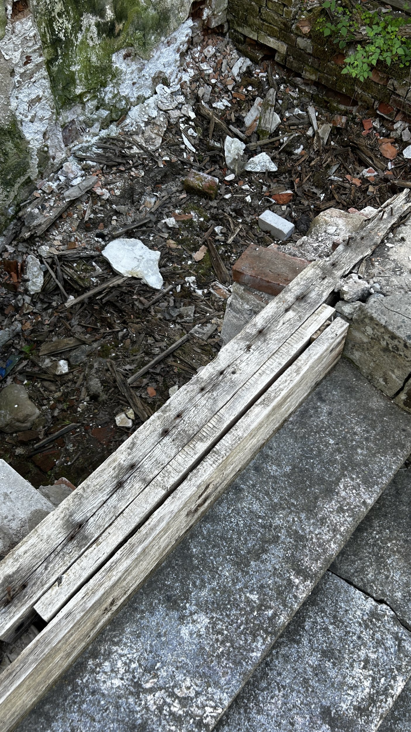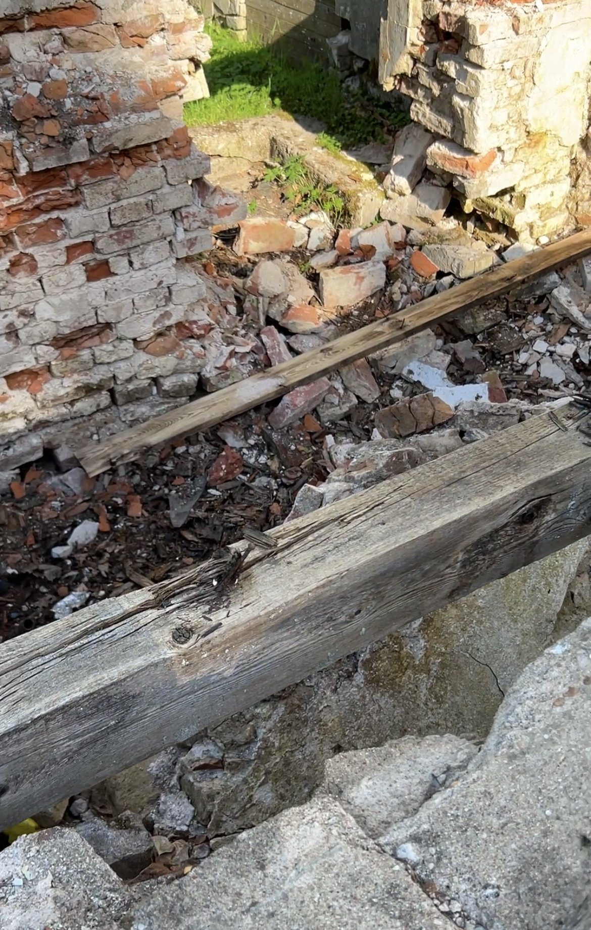 ~20-30m2 maja ja müüri vahelise ala koristus. Vana terrassi asukoht, seega enamuses on telliskivid ja krohvi tükid; puidujäätmed ning pinnas. Tõenäoline on, et esile tuleb ka olmejäätmeid nagu näiteks klaasikillud, kilekotid jms.