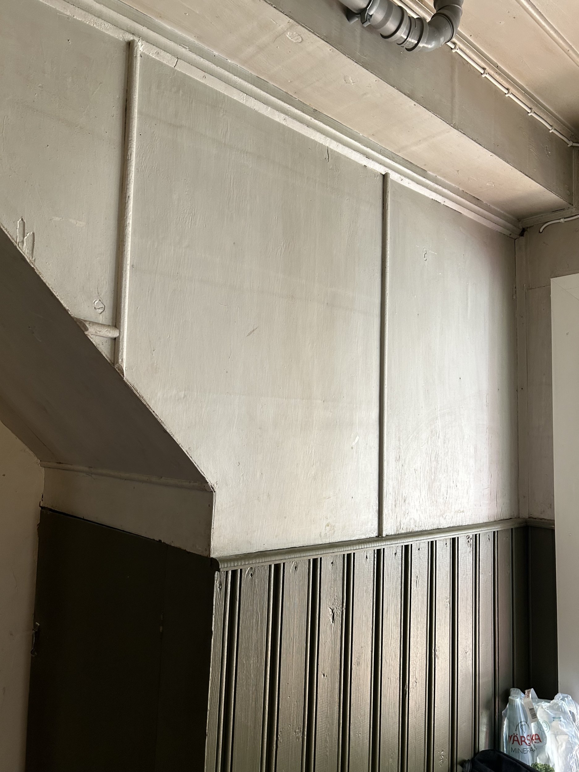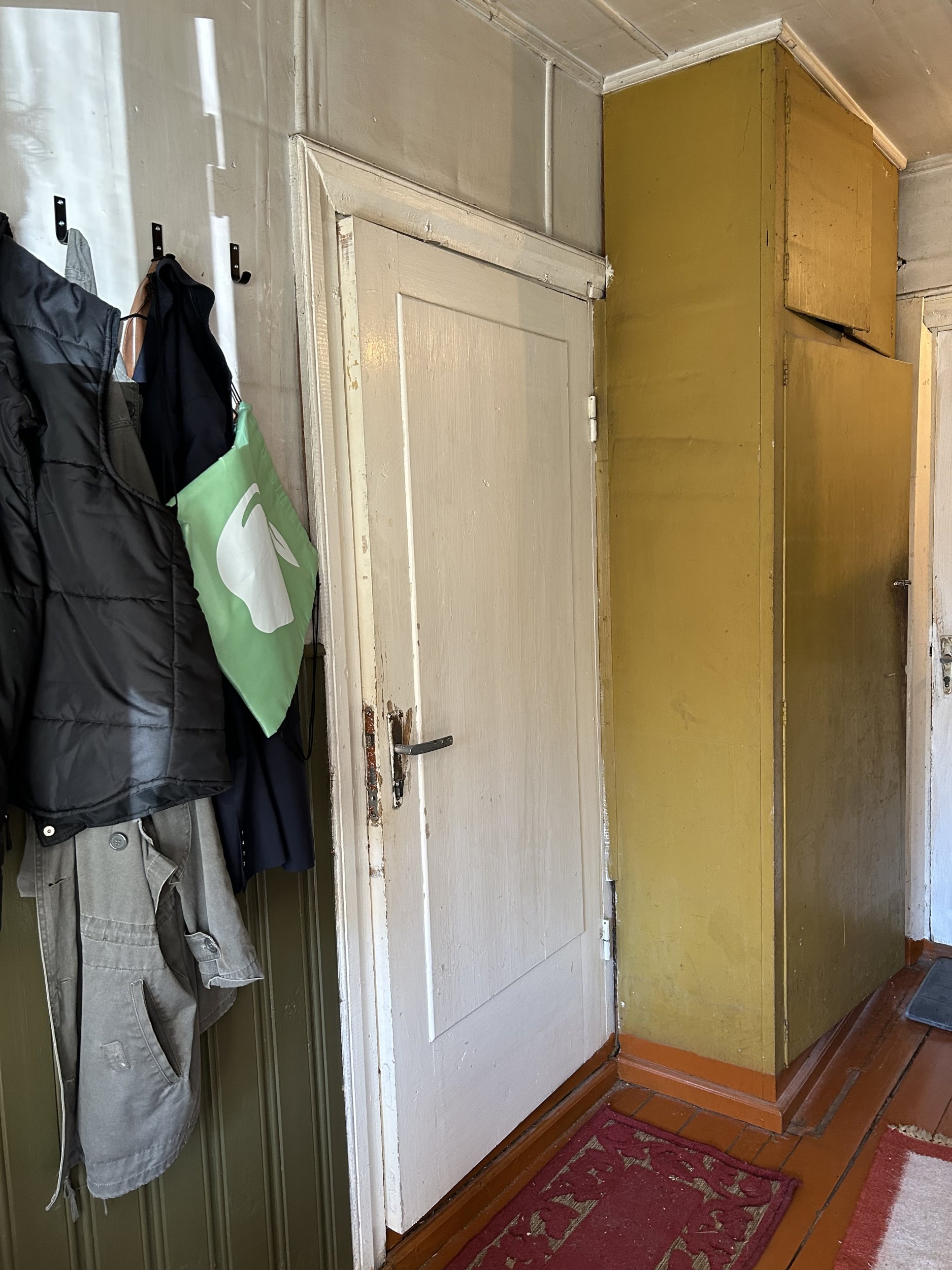 Lae värvimine, seina ülemise osaa (heledam osa) värvimine, sisseehitatud kapi värvimine. Juhtmestiku ja elektrimõõturi tõstmine, nii et saaks vabastada ruumi külmikule. Külmiku kohast vbaneva ukseava vabastamine, nii et tekiks ligipääs teise tuppa. Teisest toast kipsplaadi osa eemaldamine, et saaks kasutada ust (roosa tuba), kipsplaadi ääre viimistlus. Puuduoleva köögi ukse lihvimine, värvimine ja paigaldamine (uks eest ära tõstetud). Praegu suletud ukse lihvimine ja värvimine, tagasi paigaldamine. Pahteldatud osa värvimine, liistude paigaldus ümber ukseava.