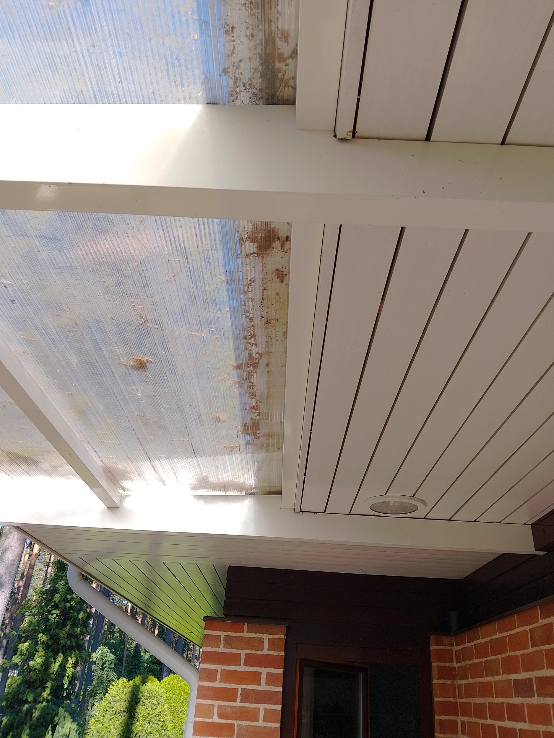 Plaat pole nurgast kahjustatud, aga vesi tuleb vist veerenni vahelt ning tilgub tugevalt läbi laudade.