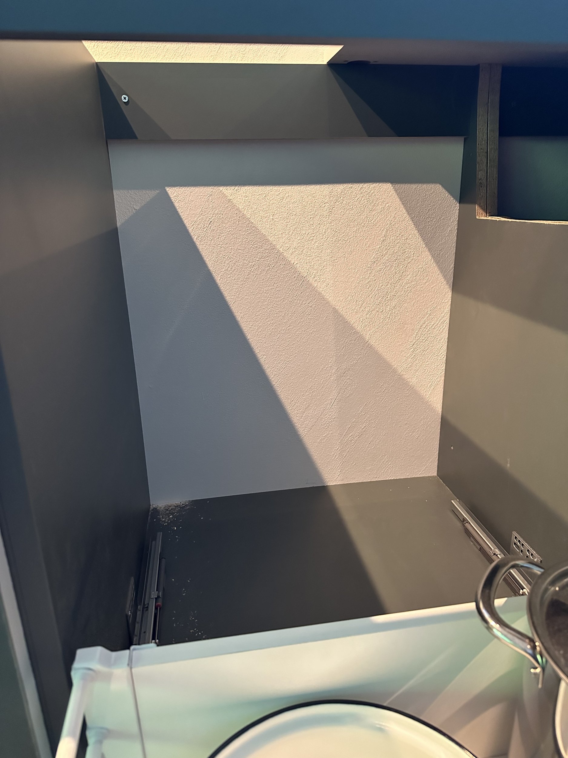 Kööki paigaldatakse peagi allatõmbe kubuga pliit. Et suunata see õhk majast välja, oleks vaja teha maja seina sobilik auk (õige suurus, õiges kohas, õigel kõrgusel, õigesti tehtud), arvestades pliidi positsiooni, kuna hetkel on tehtud ülevalt tõmbe kubu jaoks auk (pilt lisatud ka näitena) ehk see asub vales kohas. Soovime sellega sarnast musta resti.