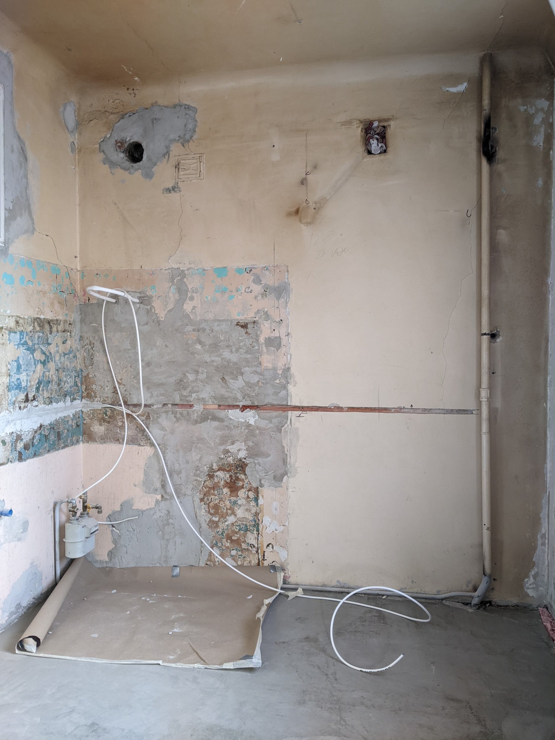 Vaja pahteldada ja värvida 1950ndatel ehitatud köögi seinad, lagi ja aknapõsed. Lae pinda 7,5 m2, seina pinda koos aknapõskedega 29m2. Lae ja seina vahel kaarjas üleminek.