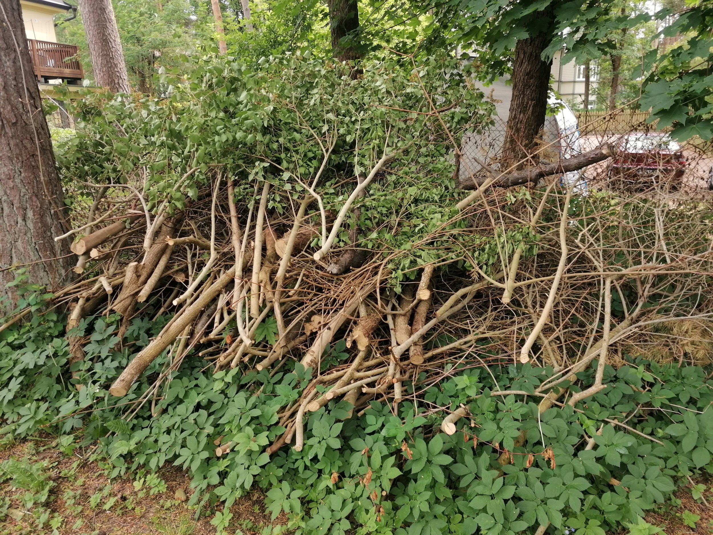 Soovin okste äravedu s.h pildil nähtav puit. Oksad ning puit on kahes hunnikus. Hunnikutele transpordiga kõrvale ei ole võimalik sõita. Oksad on ca 2,5m. pikad.