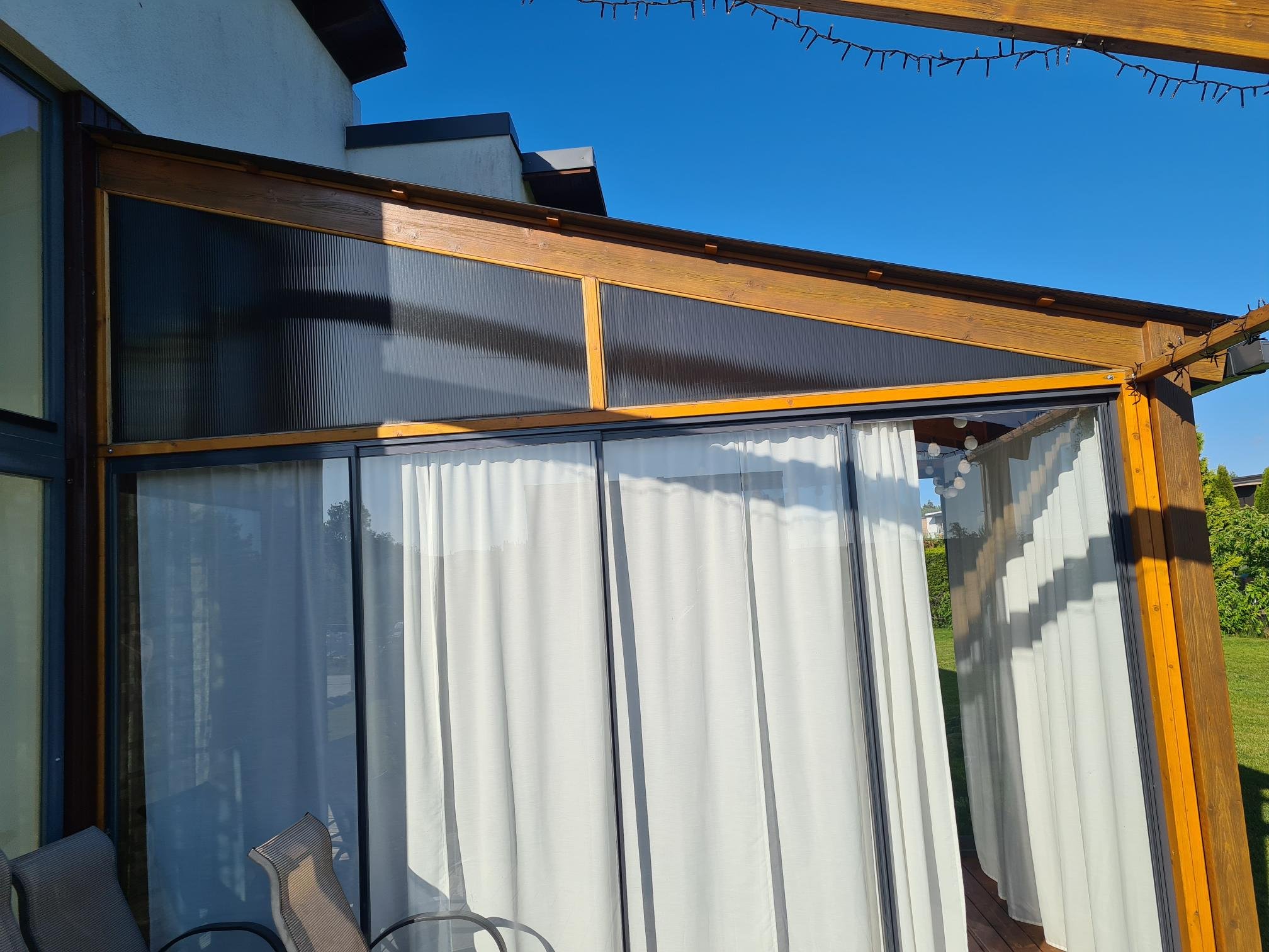 Terrassi katuse kihilise polükarbonaat plaatide vahetus, vanade eemaldamine.