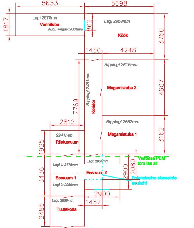 Eesruum 2: paigaldada ripplagi, vaheseinad ehitada(puktiirjoon), maha linoleom