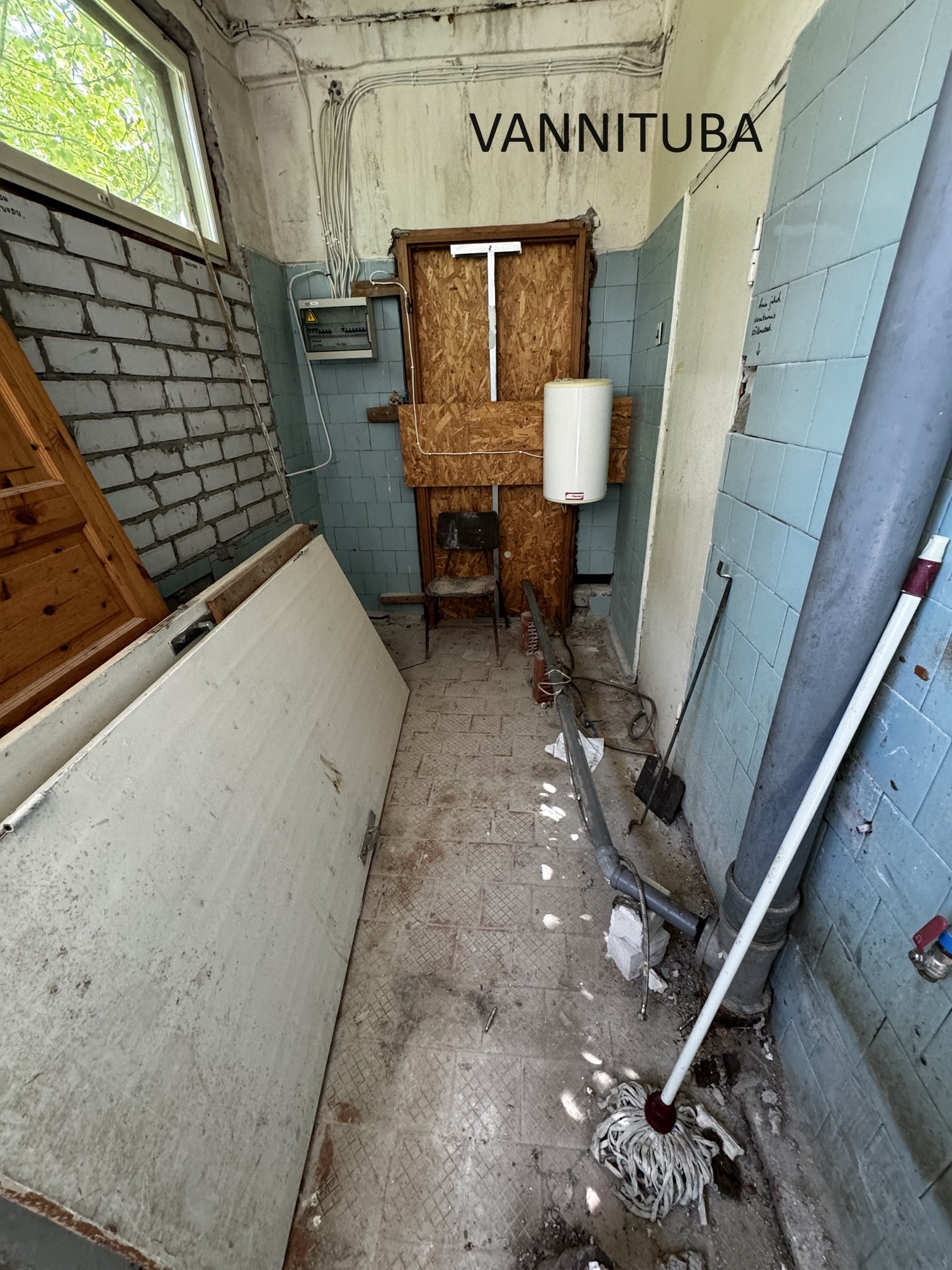 Vannituba: paigaldada ripplagi, vahesein ehitada, plaatida, väljatõmme õue, paigaldada wc, dušinurk, valamu koos kapiga, pesumasin, boiler. Kogu tarbevee torustik paigaldada ning kanalisatsioon. Vana kanali toru saab ära kasutada. Vannitoa pikkus peaks olema täpselt nii palju, et eelnimetatud asjad sisse ära mahuks.