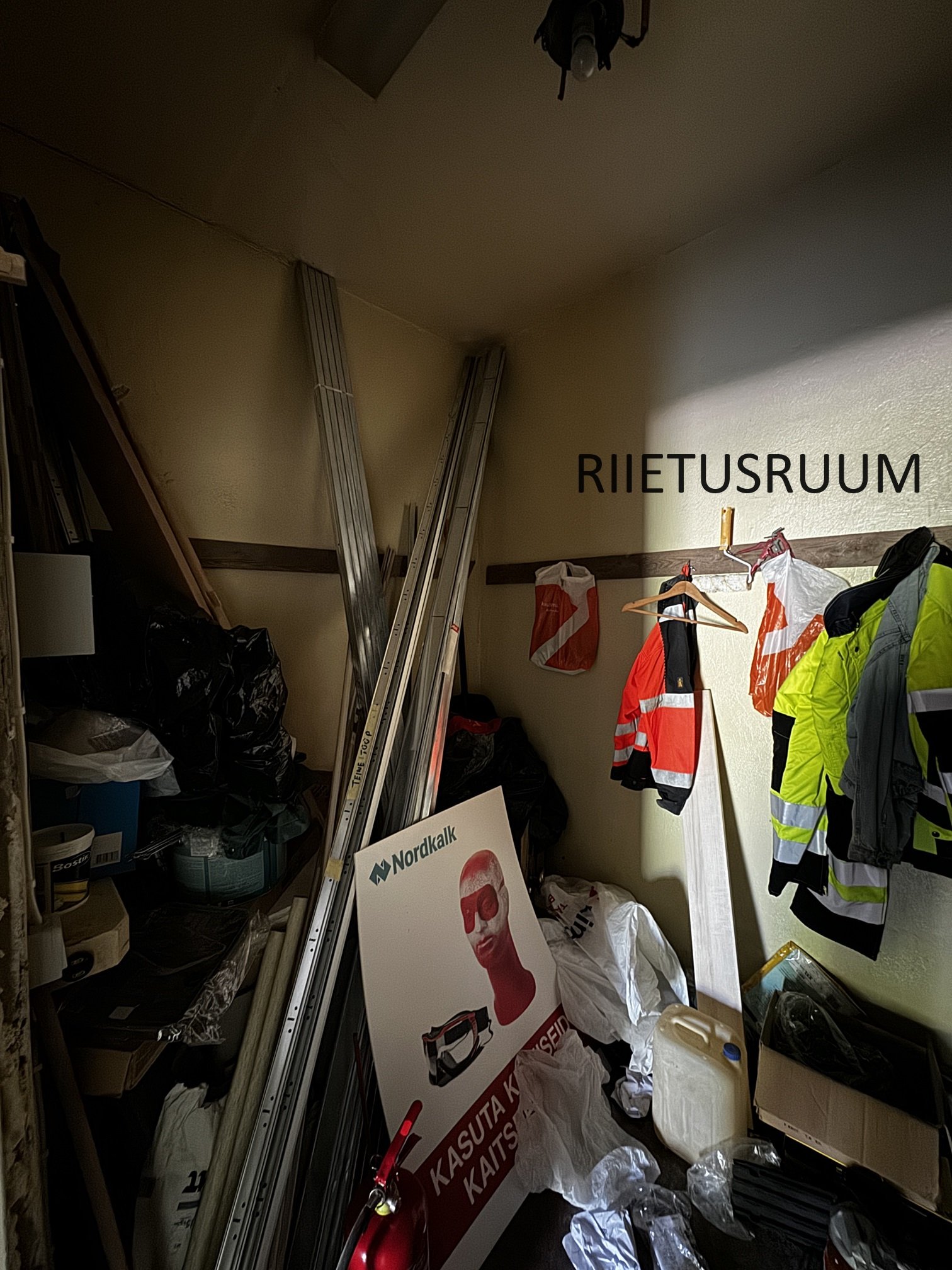 Riietusruum: paigaldada ripplagi, linoleom maha, seinad viimistleda, väljatõmme kuivatuskapi jaoks kõrvalruumi, kogu sisu utiliseerida