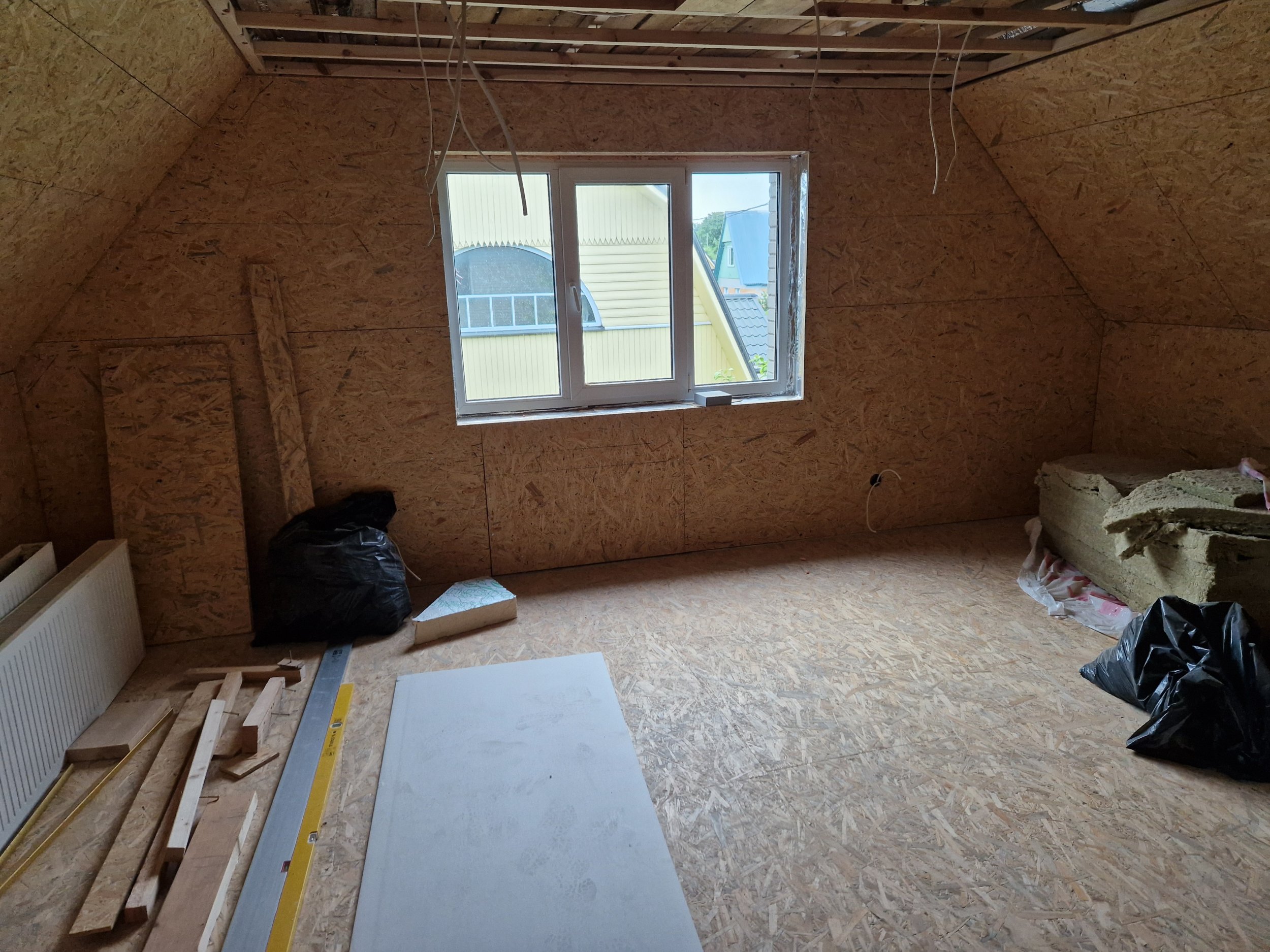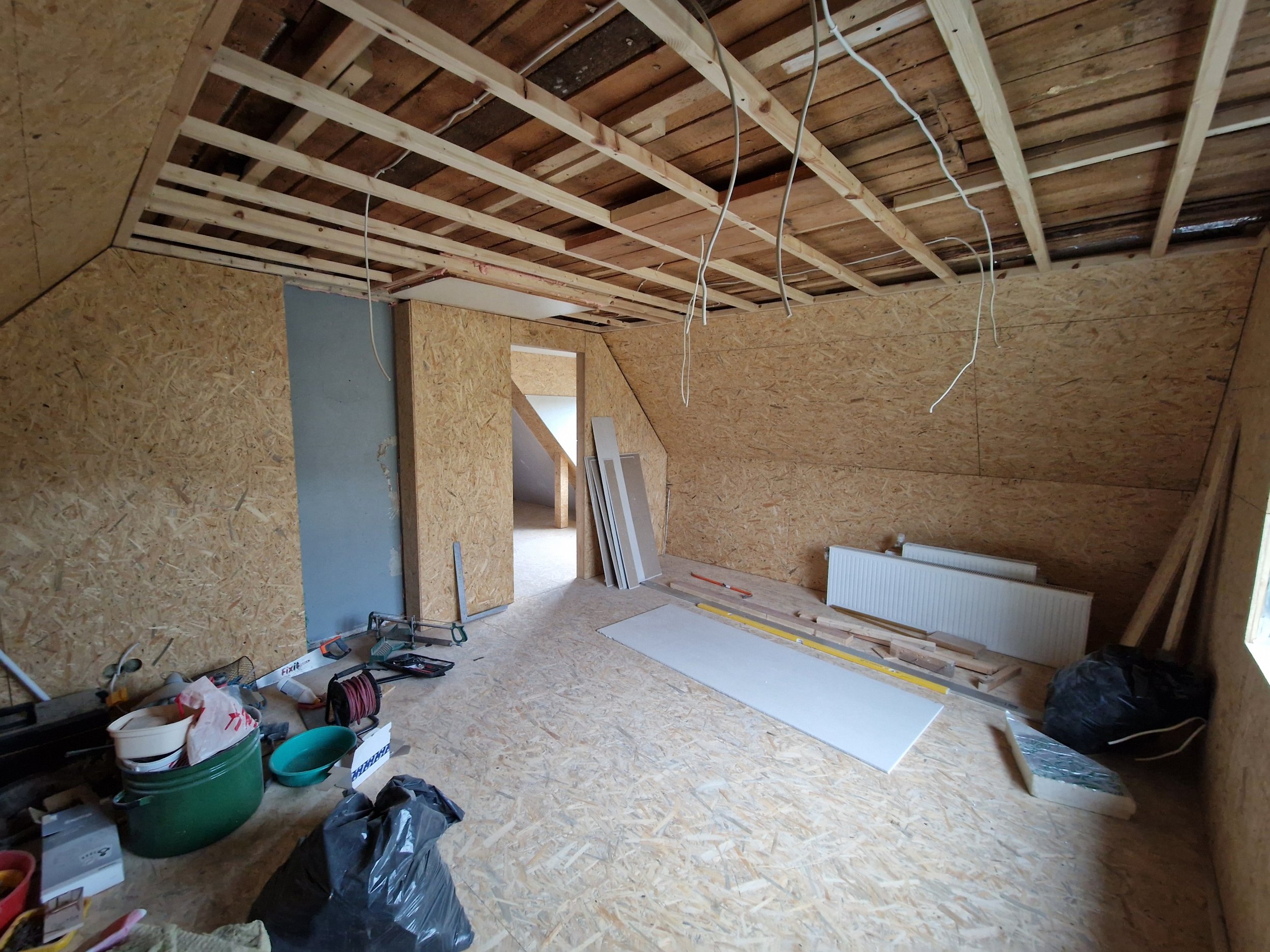 Kipsplaadid tuleb mööda ajutist kaldteed teisele korrusele tõmmata, kaldtee on olemas.