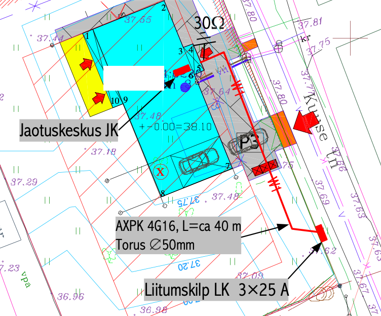 Elamu toitekaabliks kasutatakse alumiiniumsoontega maakaablit AXPK 4G16 (musta värvi). Kaabli montaazil jälgida kaabli tootja poolt lubatud painderaadiusi ja tõmbejõudusid. Projekteeritud kaabel tuleb paigaldada mehhaaniliste vigastuste kaitseks kogu ulatuses kaitsetorudesse