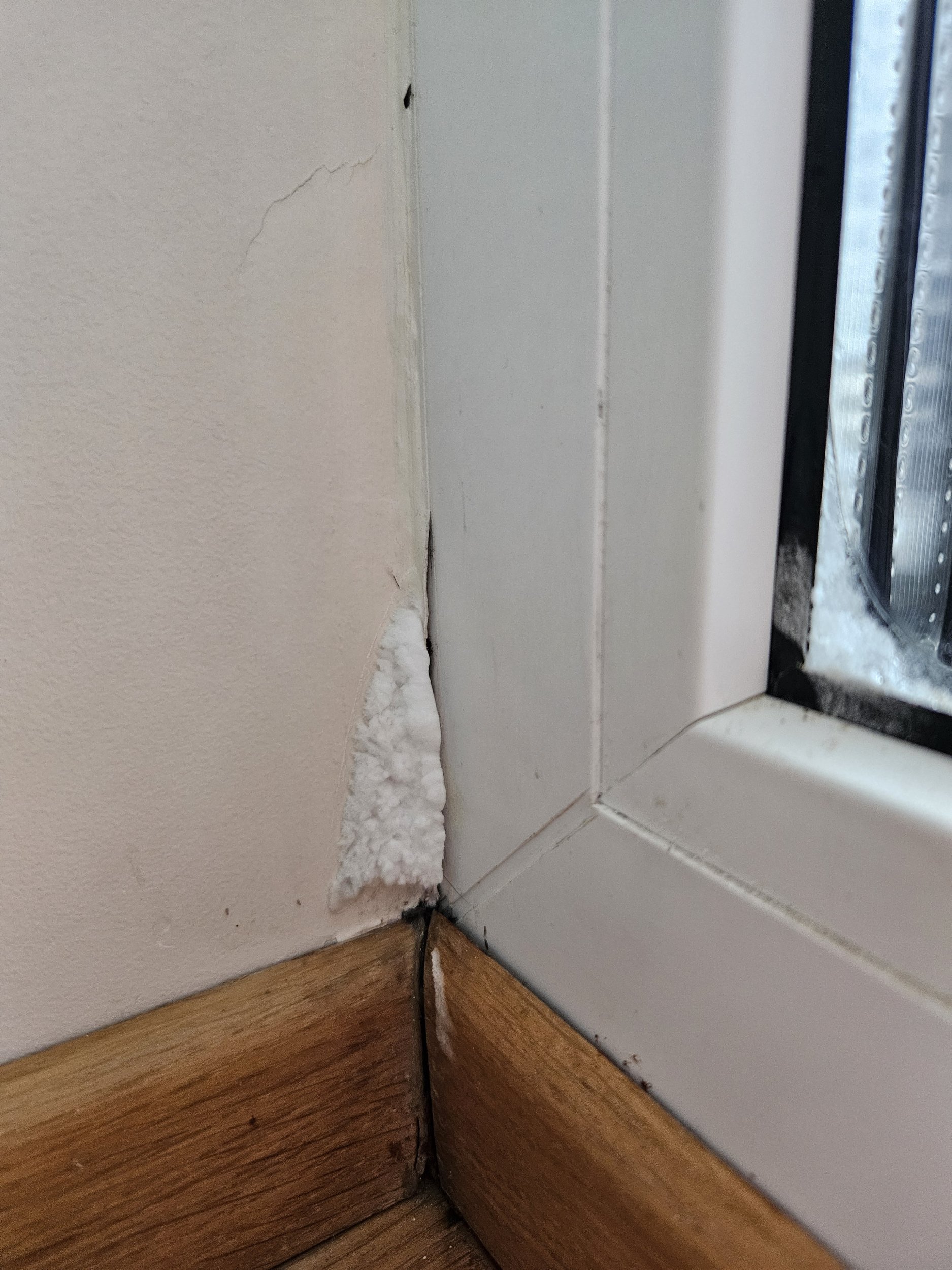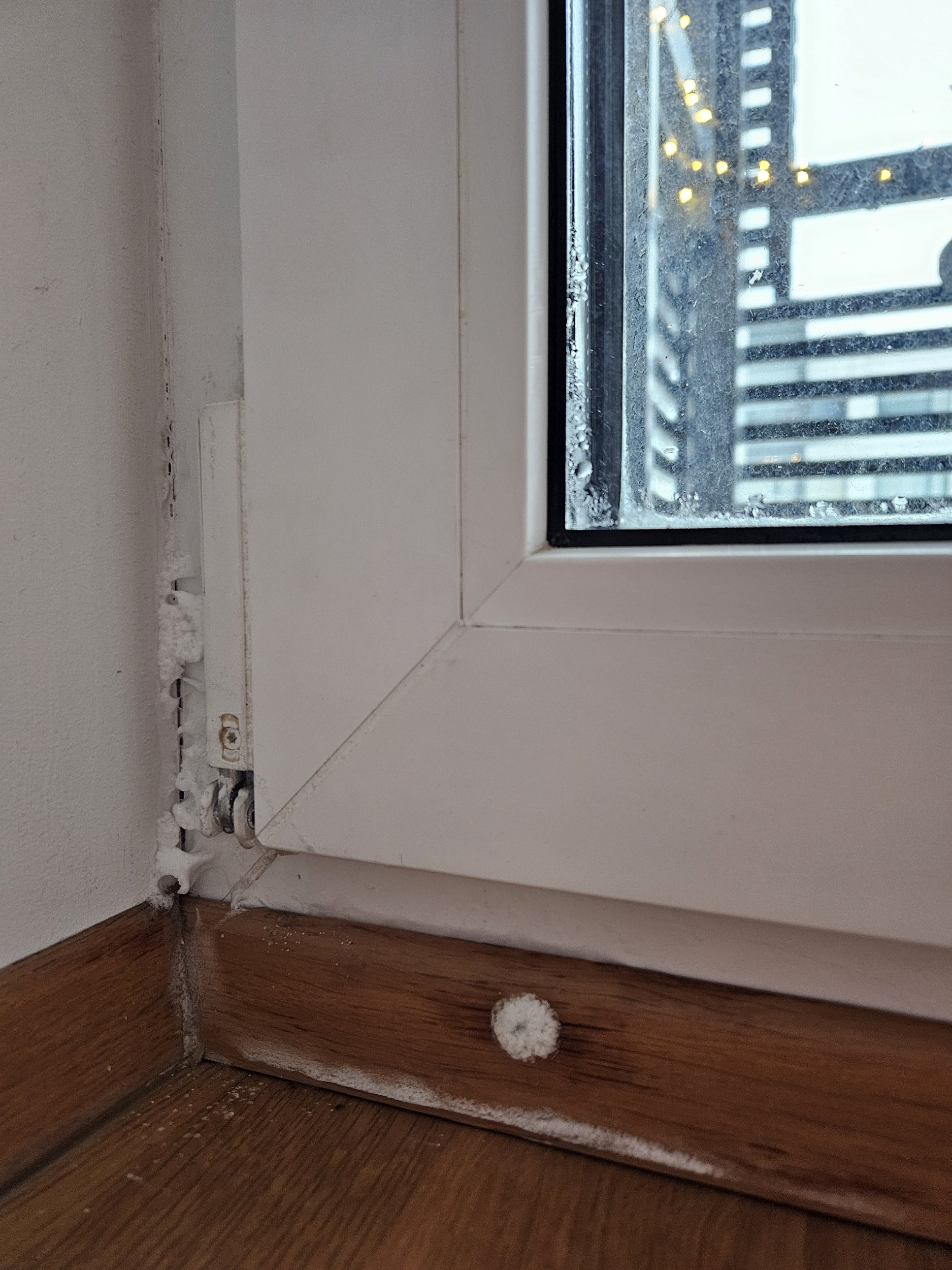 4-toaline korter: 2 maani akent, 1 nurgaaken, 1 tavaline aken. Akendel probleem külmasildadega (akende ümbruse sõlmed olid talvel jääs). Paaris kohas niiskuskahjustus.