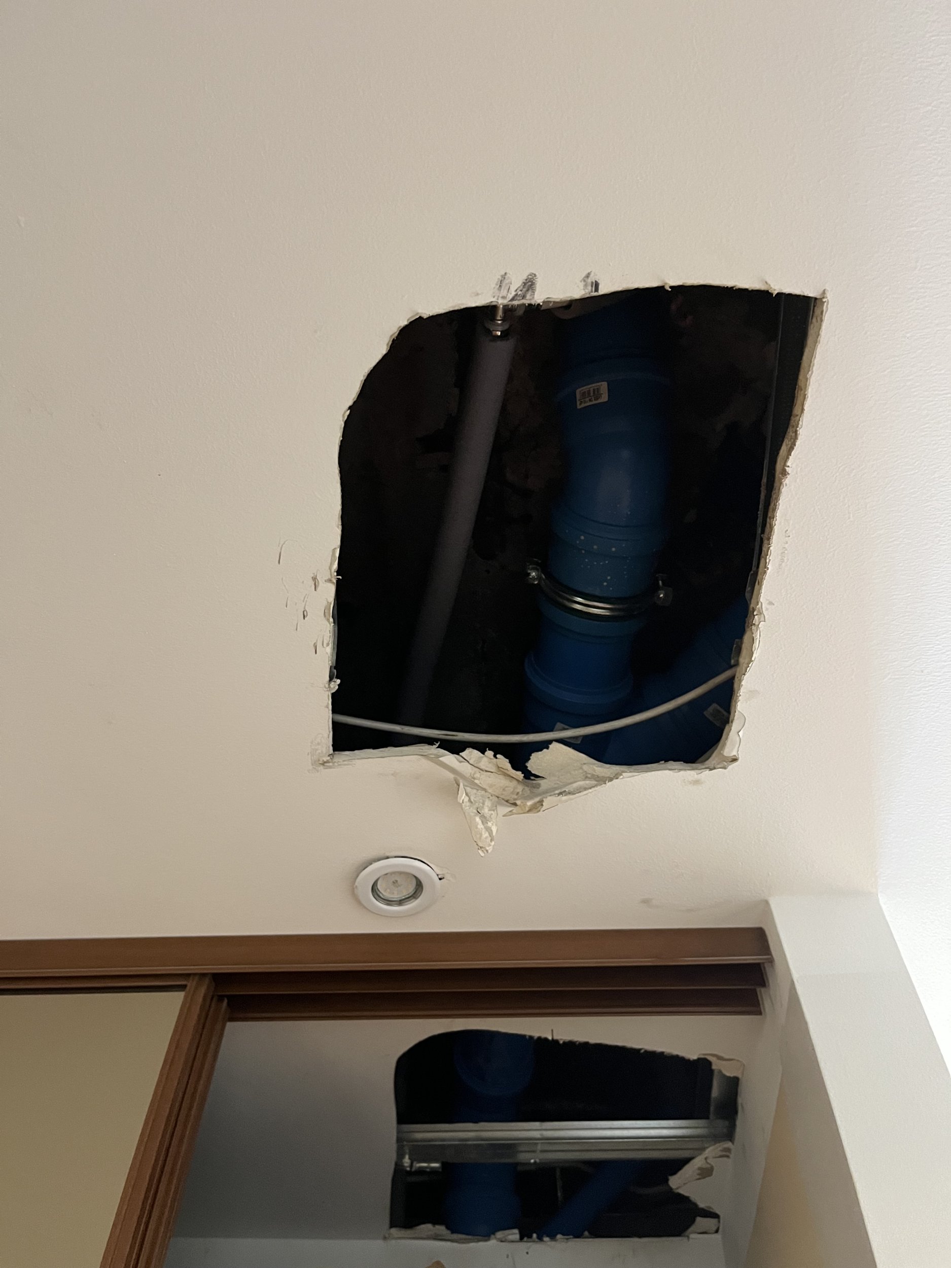 parandada kipslaes olevad kaks auku (kumbki ca 40-50 cm), pahteldada, värvida kogu lagi 2x (8,2 m2).