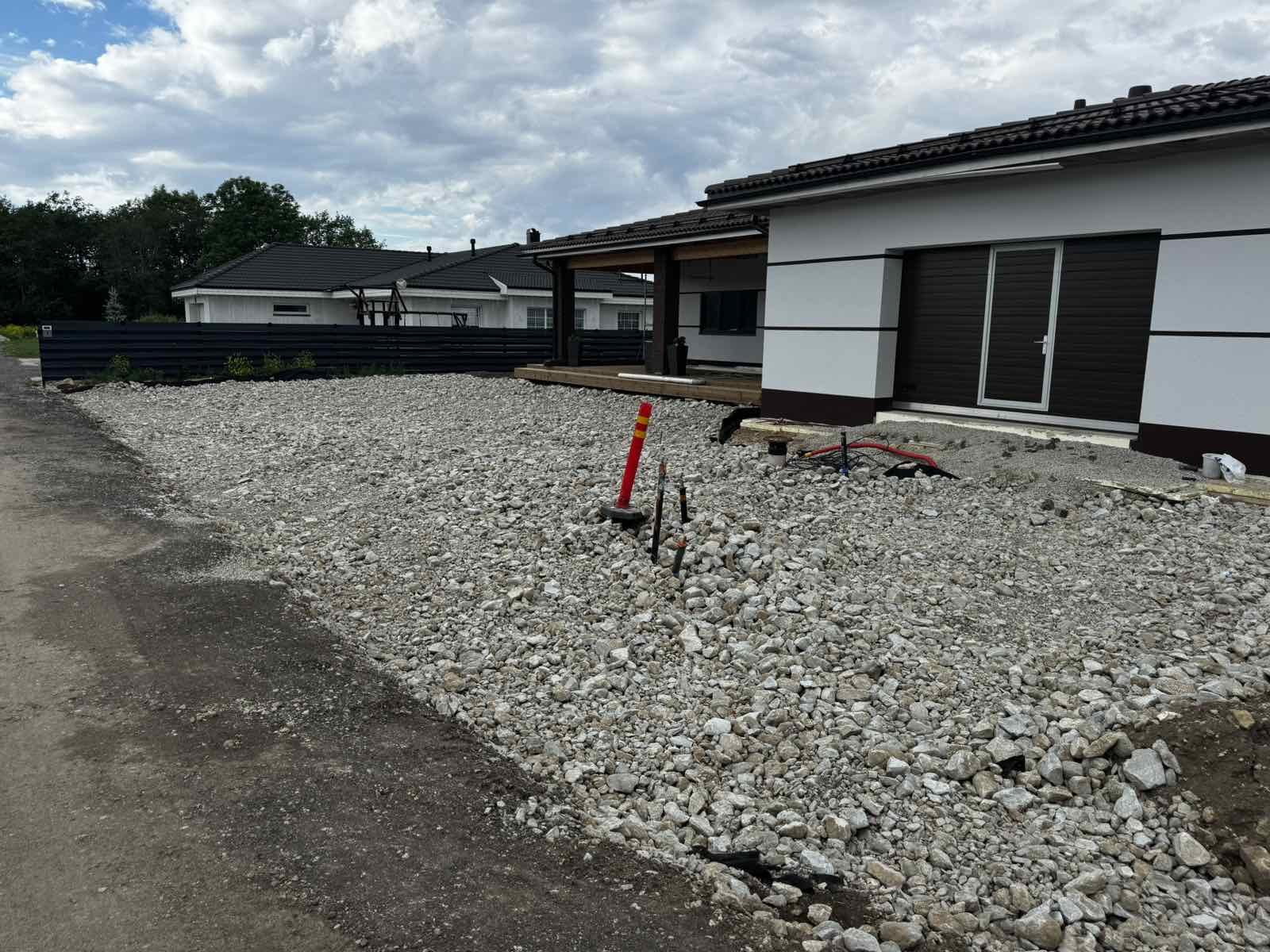 Hind sisaldab: Aluskihi korrigeerimine ning tihendamine 24t kiilumiskihi killustiku koos paigaldusega 15t sängituskihi sõelmed fr0/4 koos paigaldusega Äärekivide paigaldus poolkuiv betooniseguga (kivid tellija poolt, segu töövõtjalt) Nunna 60 kivi paigaldus (kivid tellija poolt) Kuivliiv vuukidesse (liiv töövõtjalt) Koristus ja viimistlustööd. Garantii tehtud töödele 2 aastat alates üleandmisest. Lepingu sõlmides ettemaks 45%, ülejäänud tasumine etapiti. Ettemaksu arve esitame koos km, ülejäänud vôimalik ilma km. Parimat, Kristo |