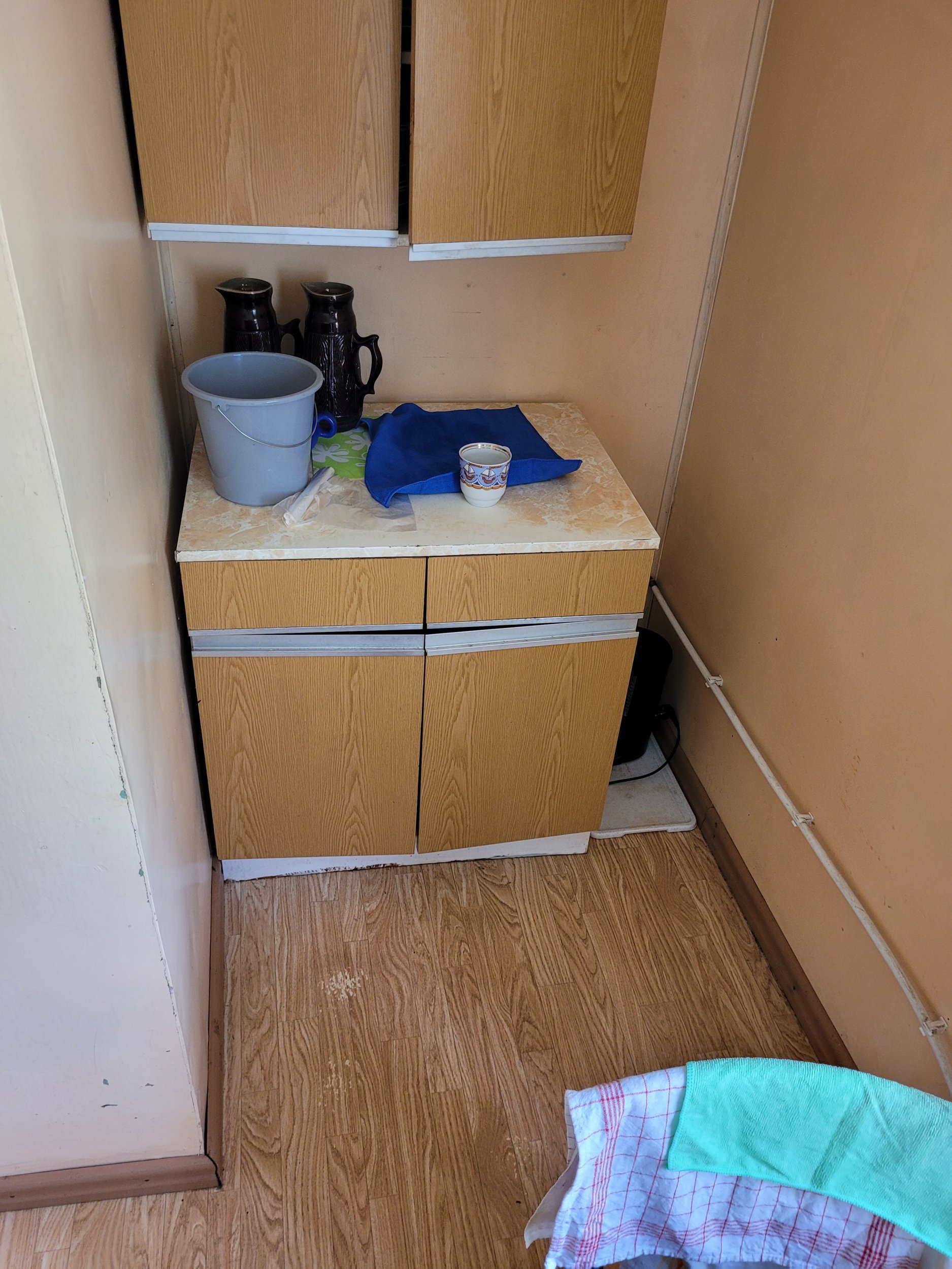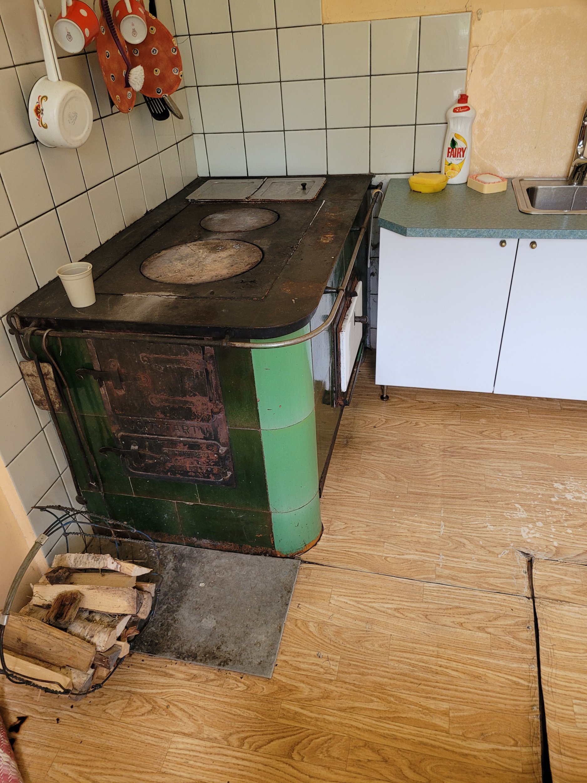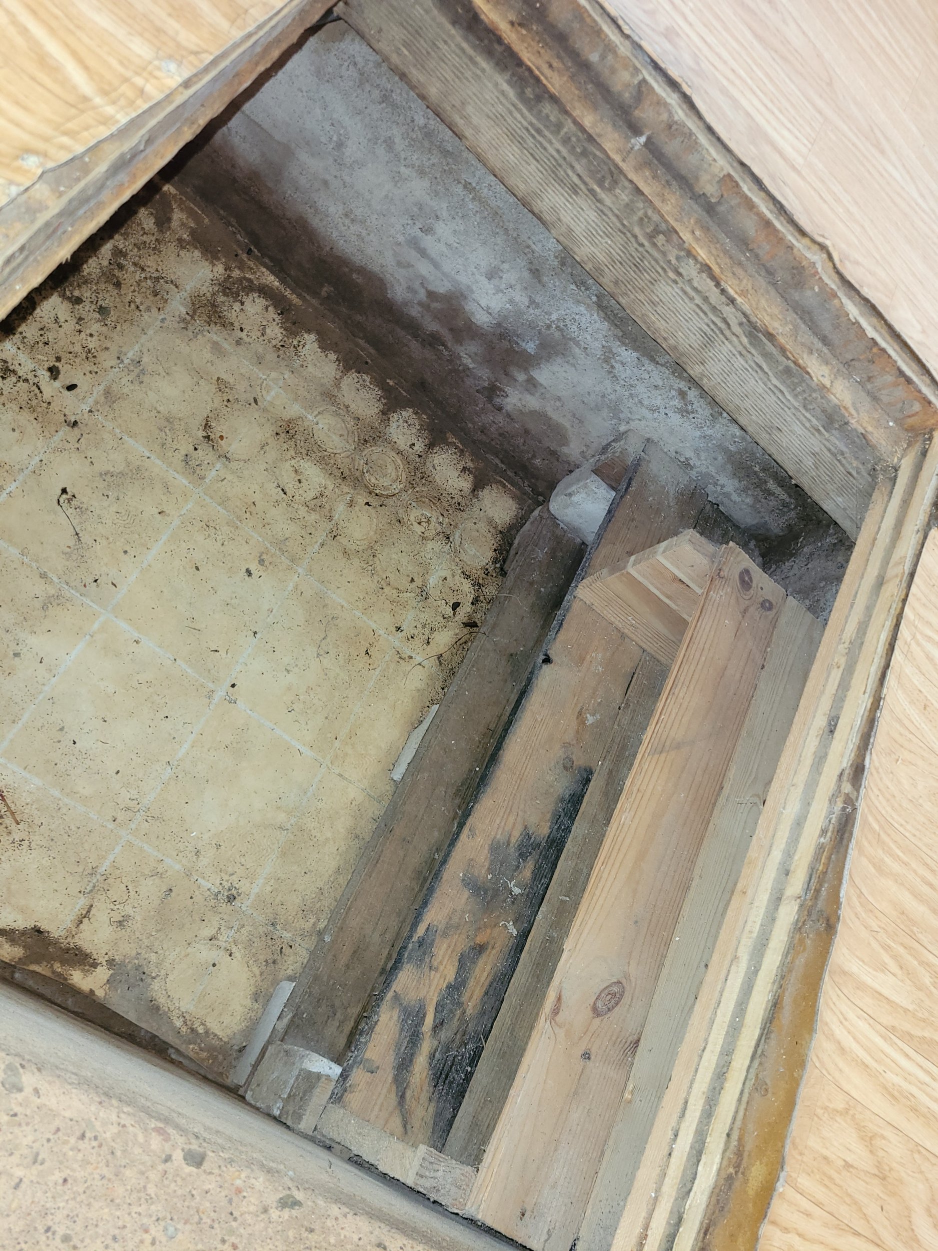 Põranda all peaks ruumi olema, plaanide järgi oli seal kelder, kuid see on majast kinni ehitatud millegipärast. Põrand on saanud veekahjustusi ja kuna plaan on ruumist köögi asemel pesuruumi moodi ehitada, siis praegune põrandakate üles võtta ja rohkem veekindlamaks teha.