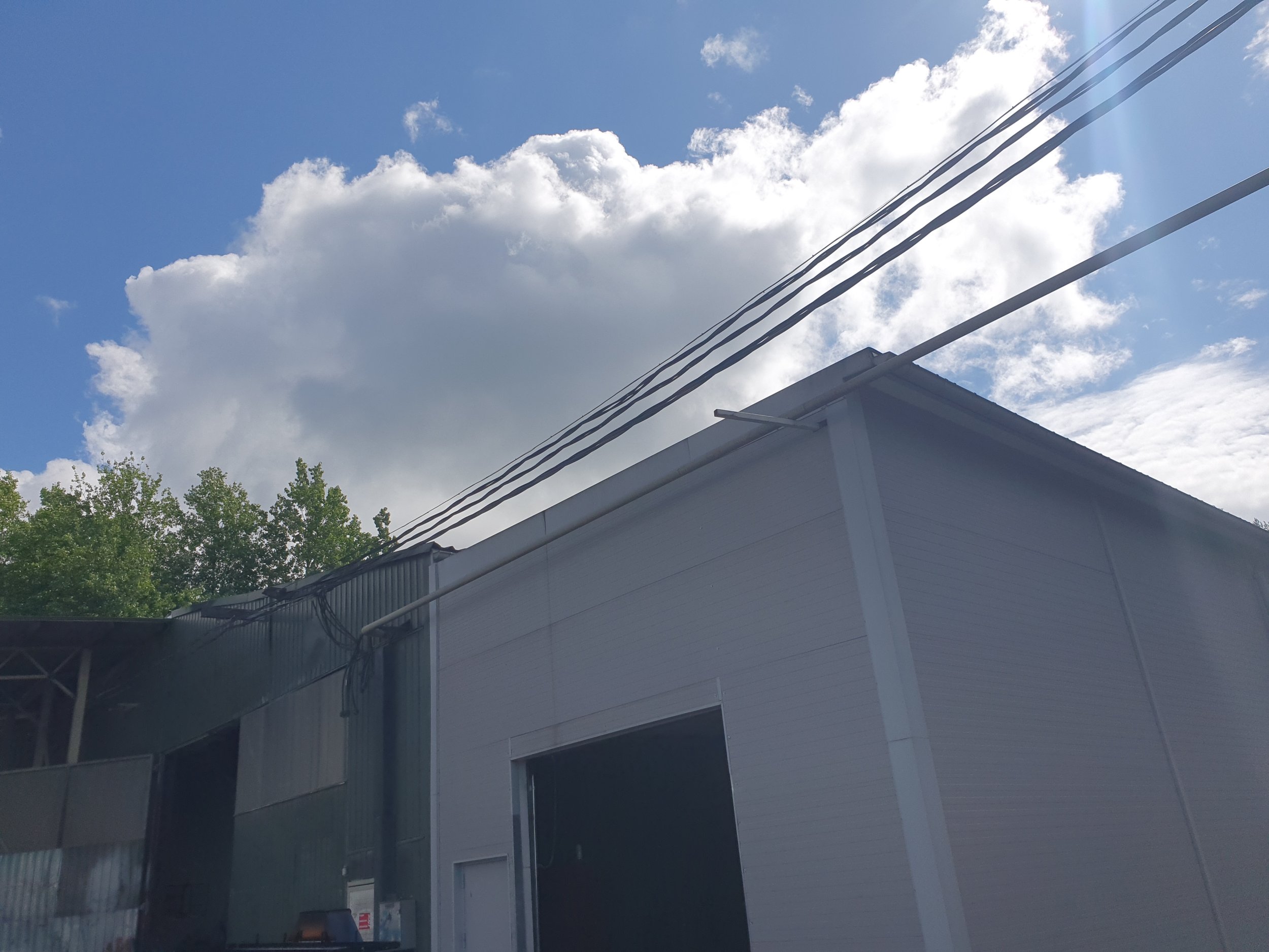 Vana katus laseb sooja välja. Sellepärast lumi hakkab sulama ja vesi jookseb uue katuse peale. Mis ei lase sooja välja. seal vesi külmub ära ja see mis ei jõudnud, otsib tee tsehhi sisse. Vaja soojustada vana katus ja teha nii, et vesi ei lähe tsehhi sisse. Vana katus metallist 43x11m uus sendvitspaneel 43X6m.