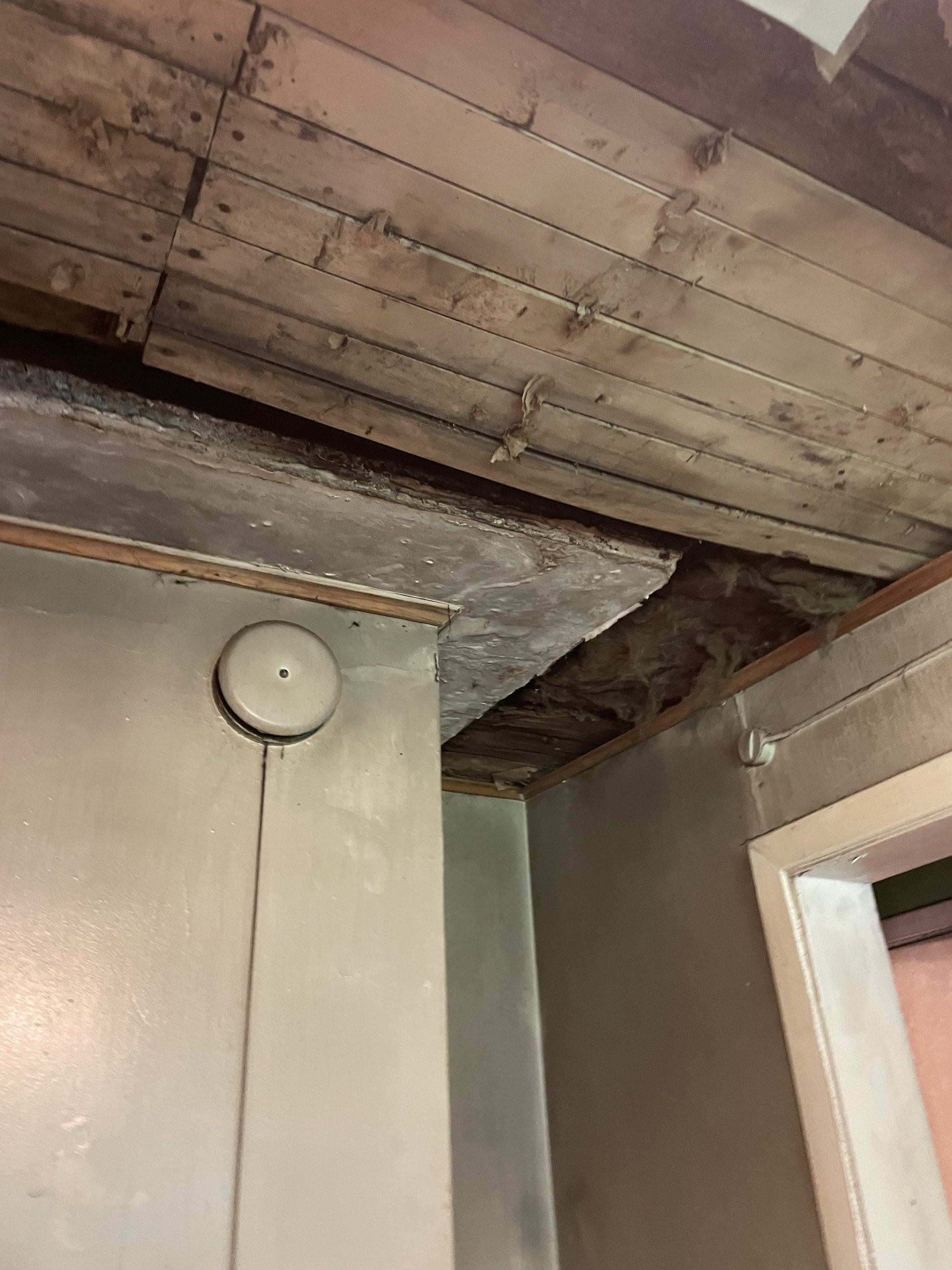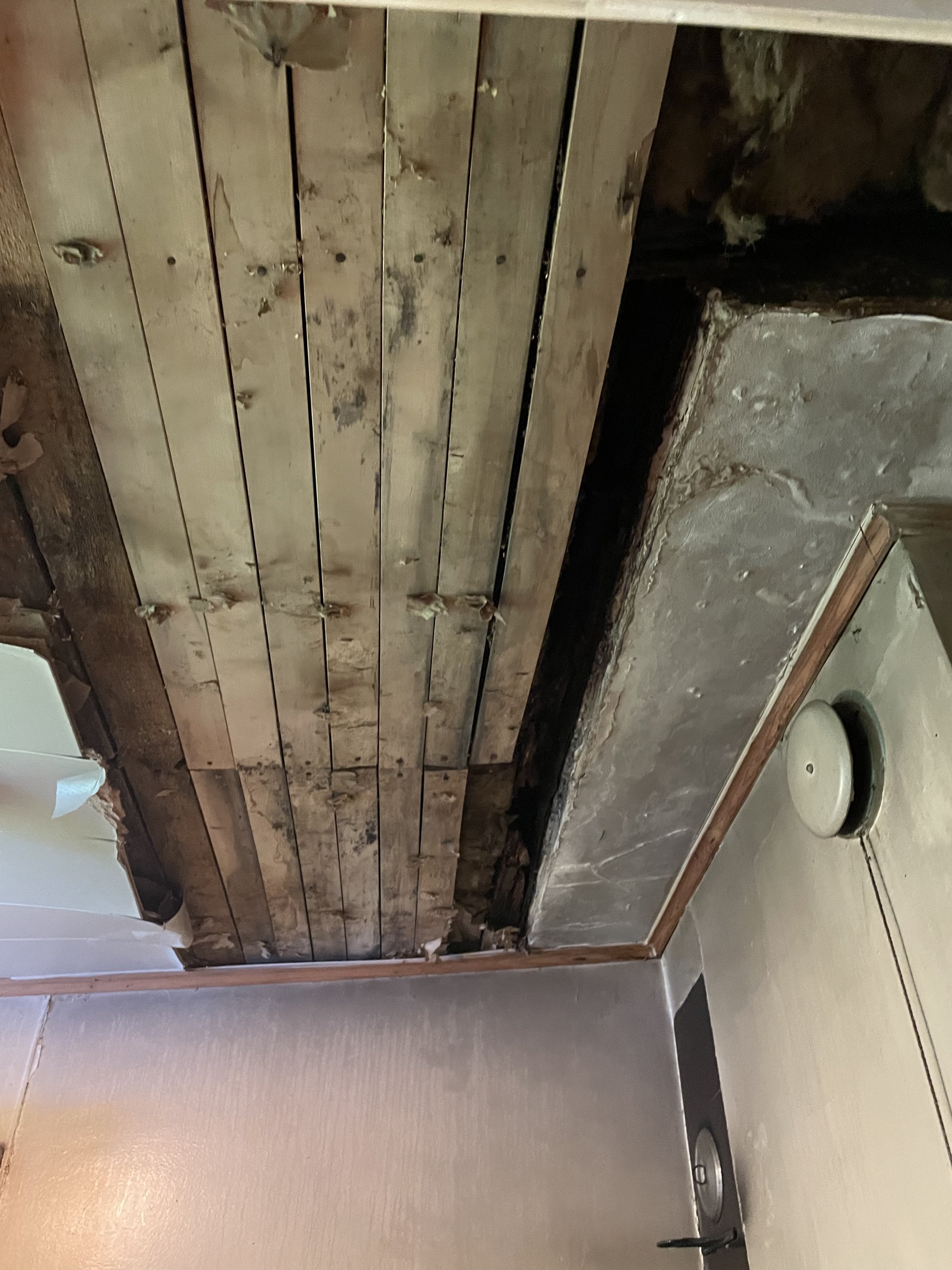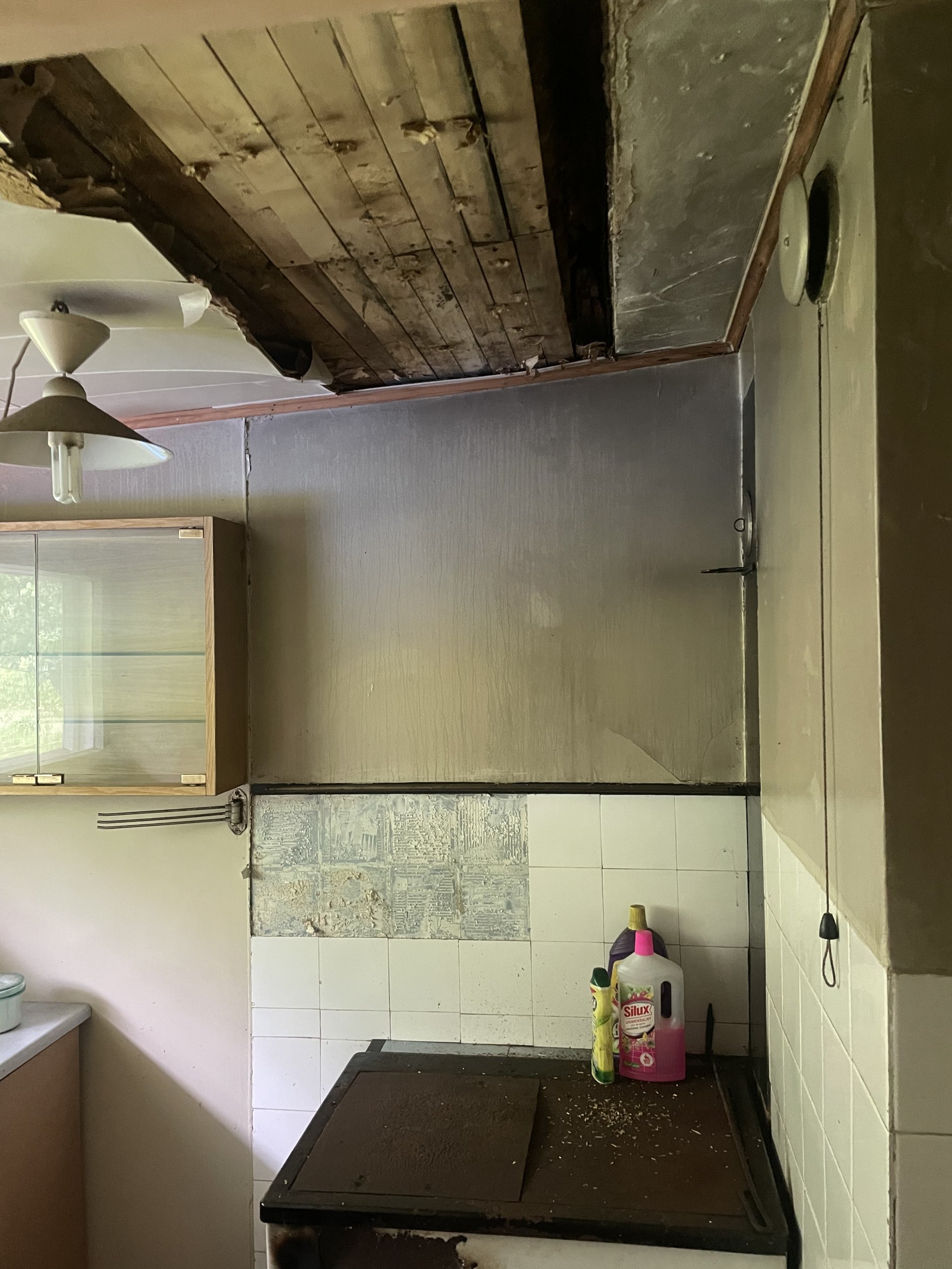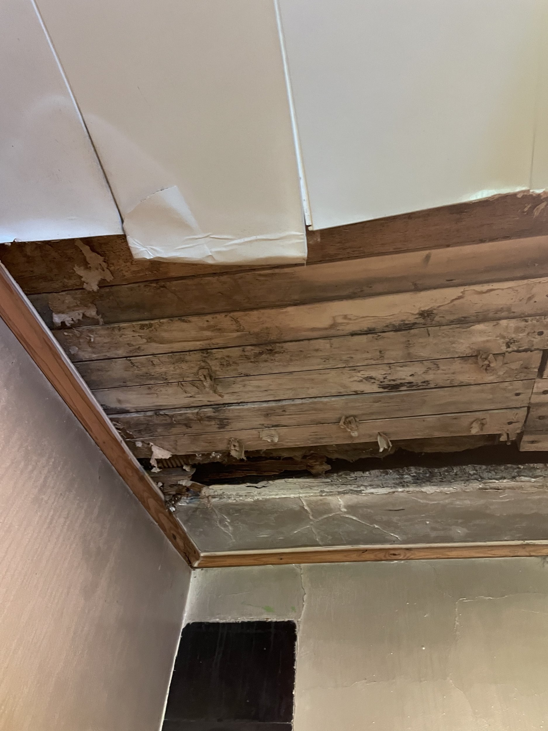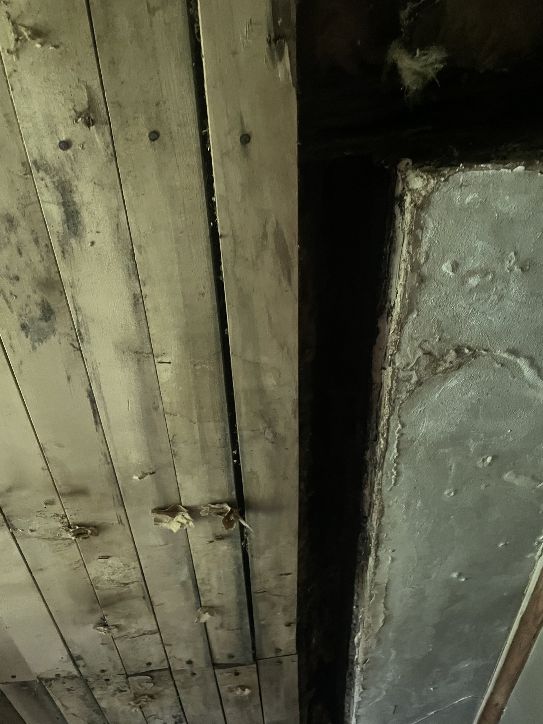 Eemaldage ja asendage kogu mädanenud puit lae piirkonnas korstna ümber.