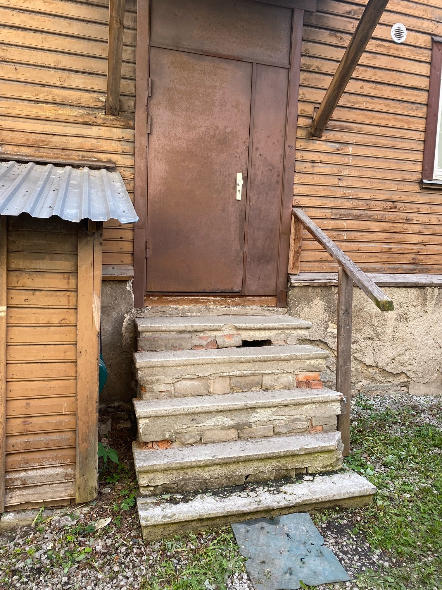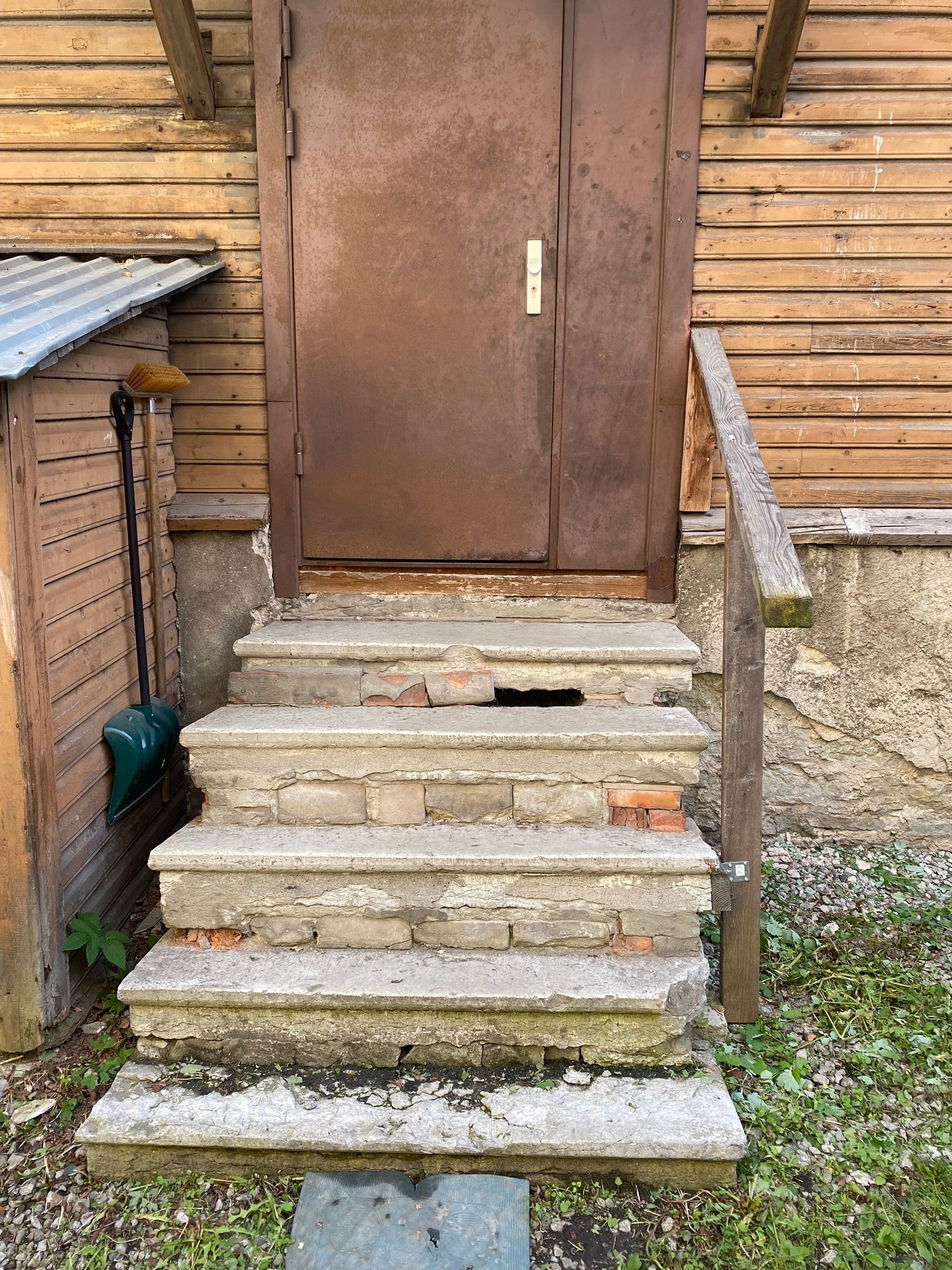 Tere, hinnas lammutus, utiliseerimine. Immutatud puidust trepp, valatud post vundament.