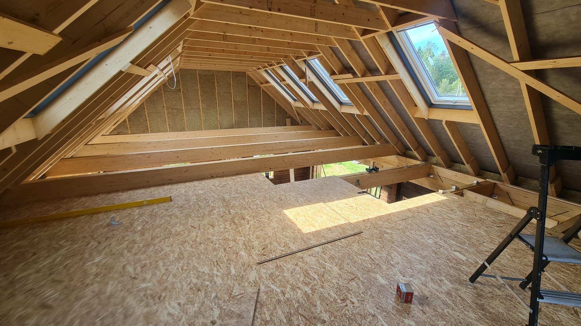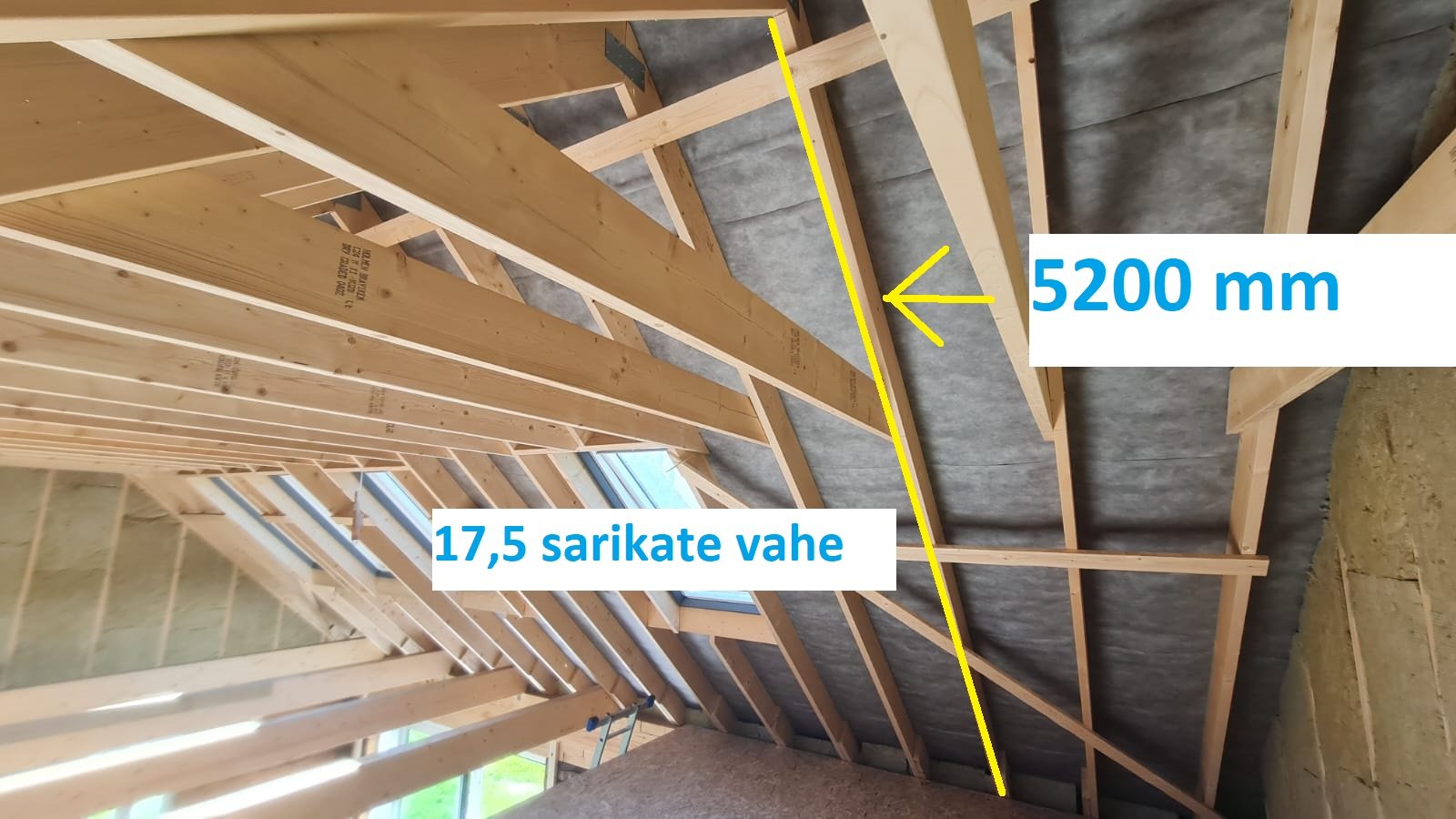 Enne soojustamist tuleb paigaldada poolikule sarikate vahele 45mm abiroov otsaseinte karkassi külge, 2x5,2m. Vt fotod.