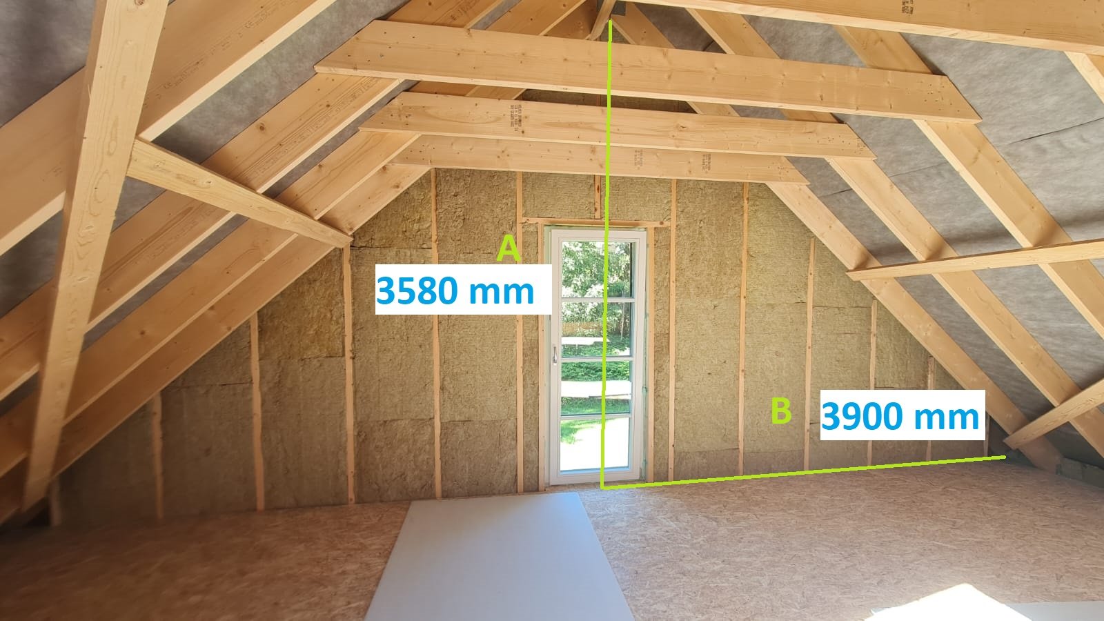 Kogu otsaseinte pindala, mõlemad kokku: 2 x 3580 x 3900 mm = ca 28 m2
