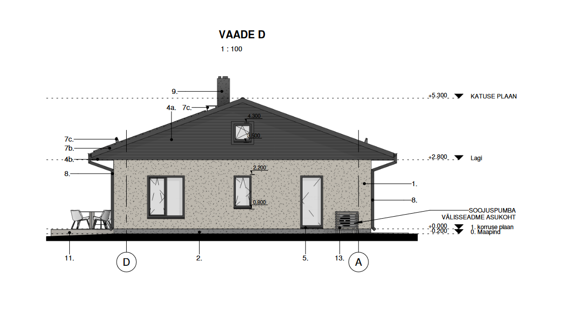 Soovime eramule korstna valmiduse, et alates elutoa laest katuseni korstent.