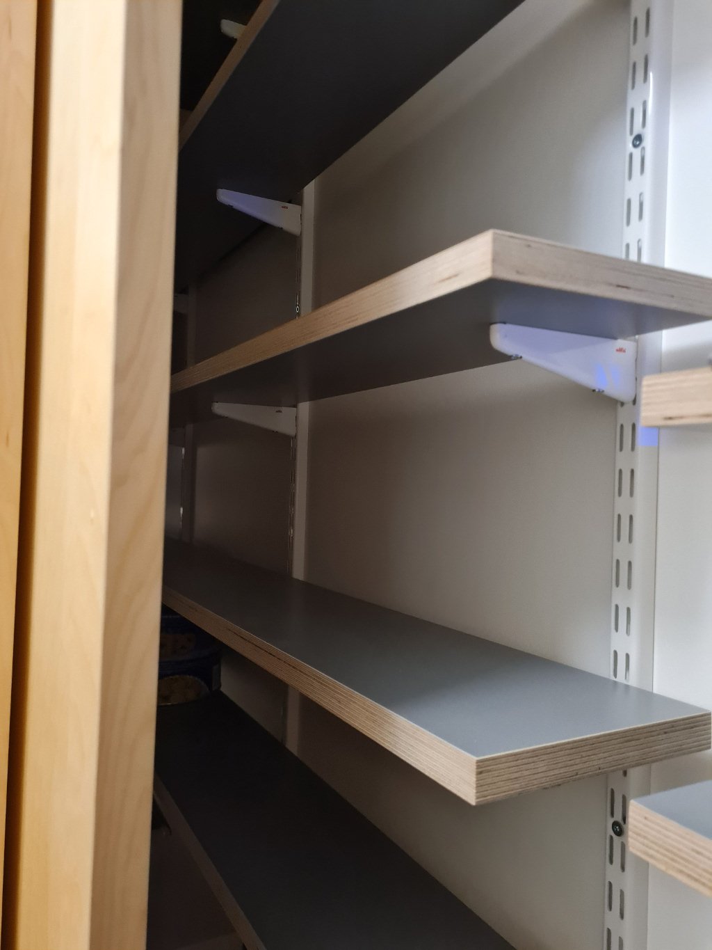 Soovin tellida topeltvaheseina ehituse kahes toas eesmärgiga vähendada naaberkorterist kostuvat olmemüra. Vahesein jääks kogu ulatuses liugustega kappide sisse ja hilisemat viimistlust tarvis ei oleks. Kui ehitada uue vaheseina jaoks karkass, paigaldada selle sisse heliisolatsiooni vill ning katta karkass kipsplaatidega, siis uue seina paksus kokku ei tohiks olla rohkem kui 120 mm. Seda sellepärast, et ma soovin fotol näha olevad riiulid paigaldada uue seina vertikaalprofiilide külge ning hetkel lahutab riiuleid liugustest kõige kitsamates kohtades 13 cm. Lisaks peaksid siis vertikaalprofiilid olema sellisest materjalist ja ehitusega, mille külge saab neid riiuleid paigaldada. Midagi rasket riiulitel hoidma ei hakkaks.