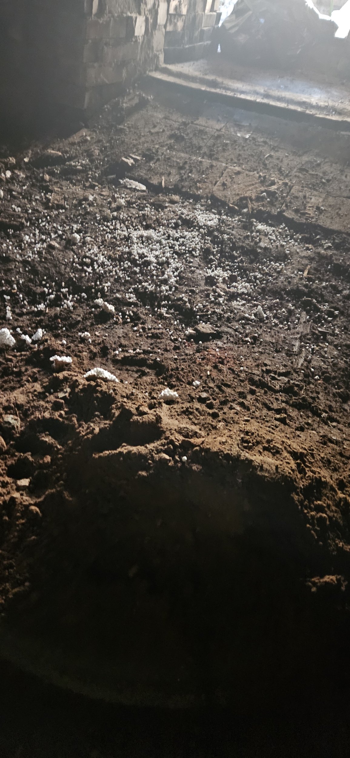 Pinnase väljavedu keldrist 5 ruumist, keskeltläbi 30 cm ulatuses ühtse tasapinnani. Katta kilega ja tasandada liivaga. Töö ajal tagada olemasolevate tugipostide toestus.
